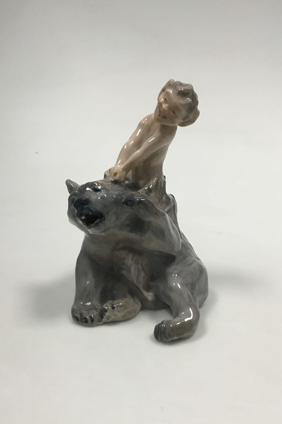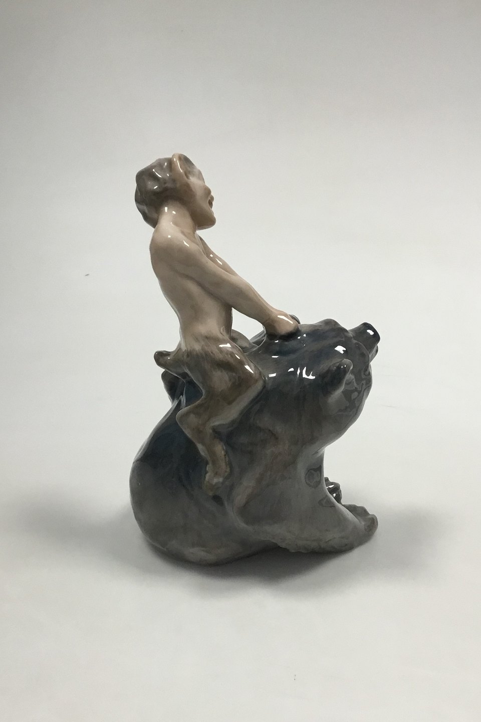 Royal Copenhagen Figur af faun der trækker en bjørn i øret No 1804. Designet af Knud Kyhn. Fra 1945. Måler 19 cm. 1. Sortering
