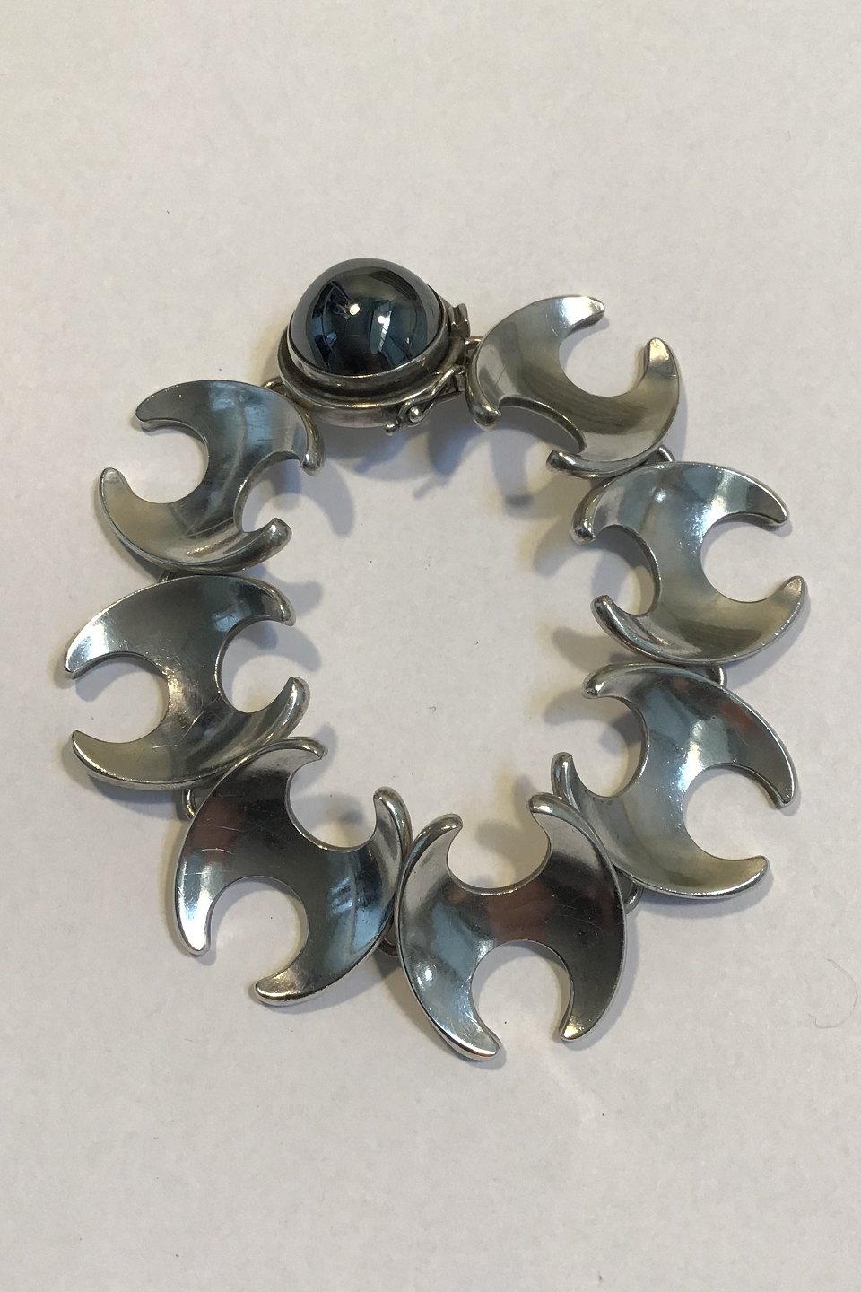 Georg Jensen Sterling Sølv Armlænke No 130 med Hæmatit Henning Koppel Måler 19 cm Vægt 68.3 gr