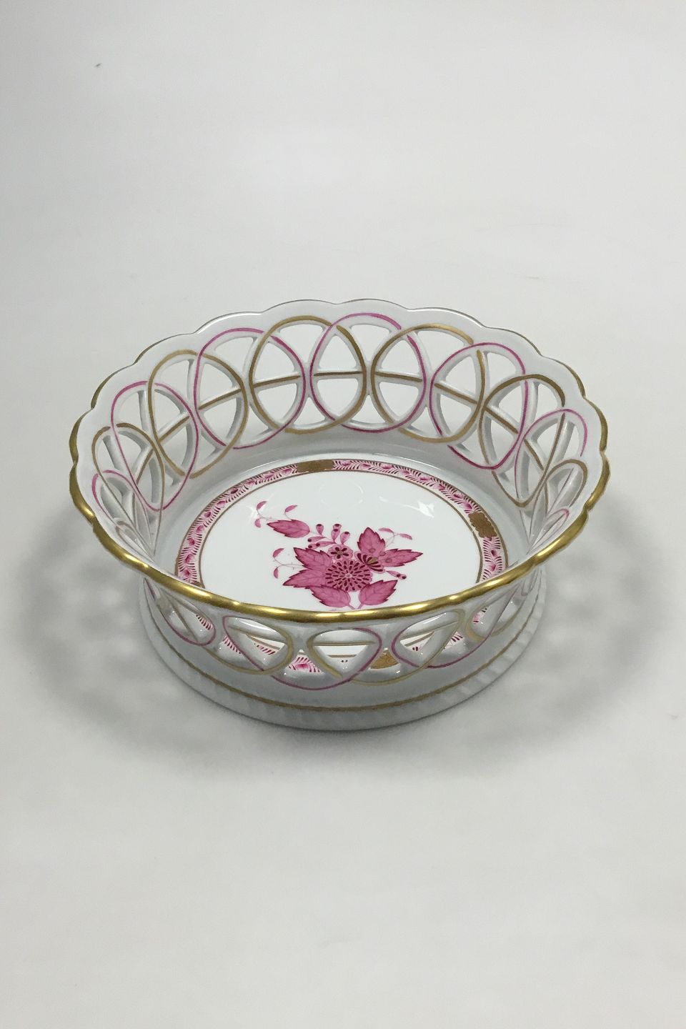 Herend Hungary Apponyi Purple Bread/Fruit Basket No 7404. Measures 2 3/4 in. x 18.5 cm / 7 9/32 in.