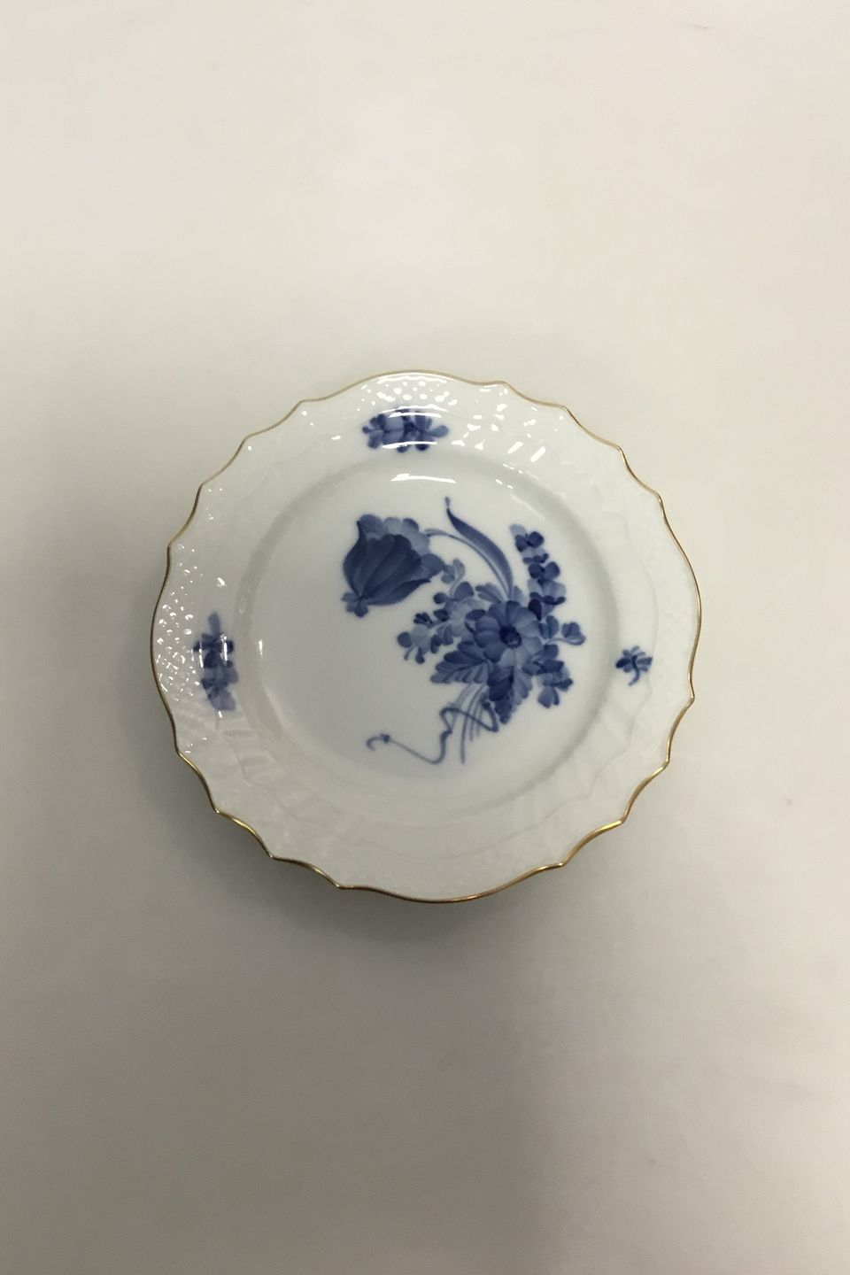 Royal Copenhagen Blå Blomst Svejfet med guldkant Kagetallerken No 1625. Måler 17,5 cm