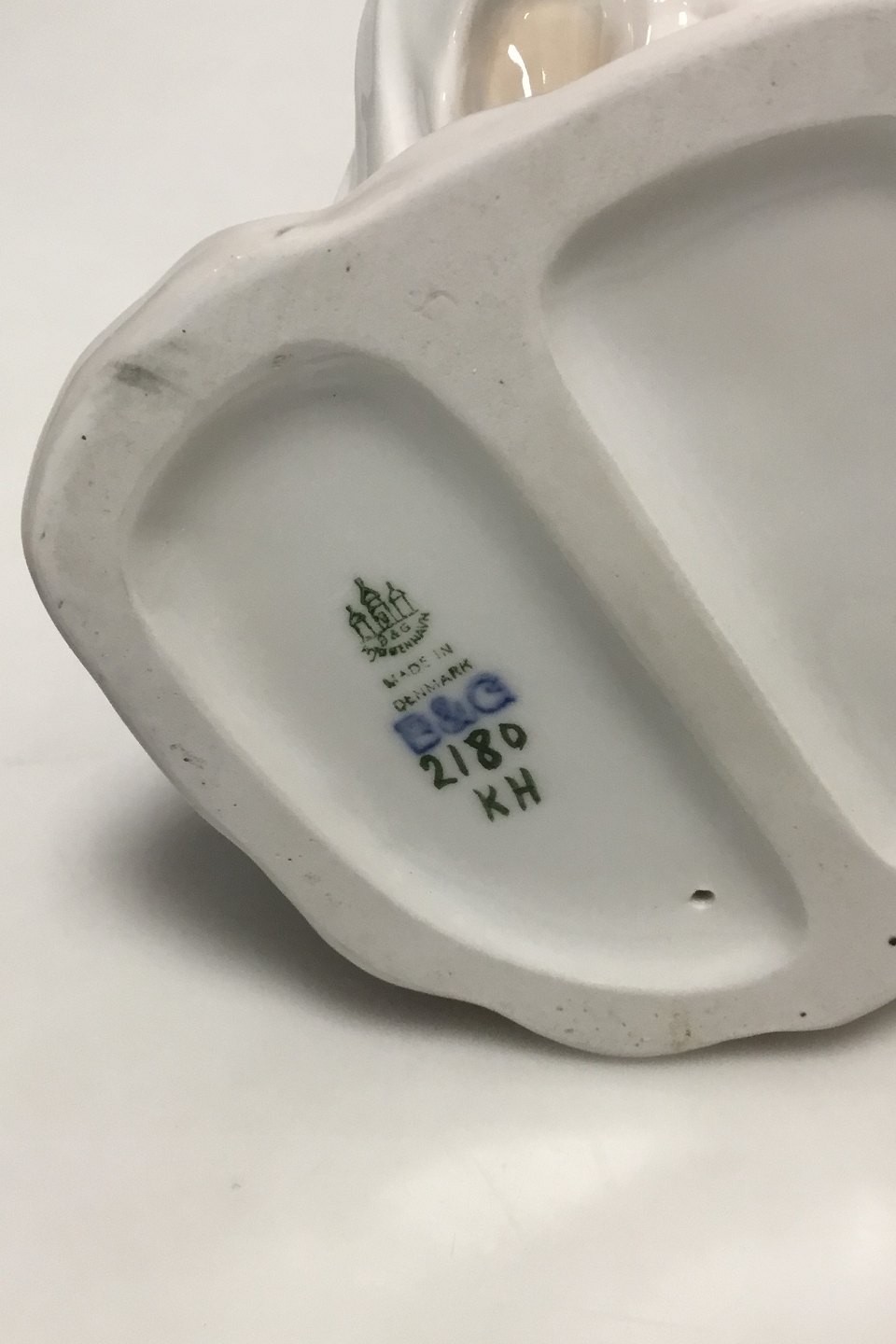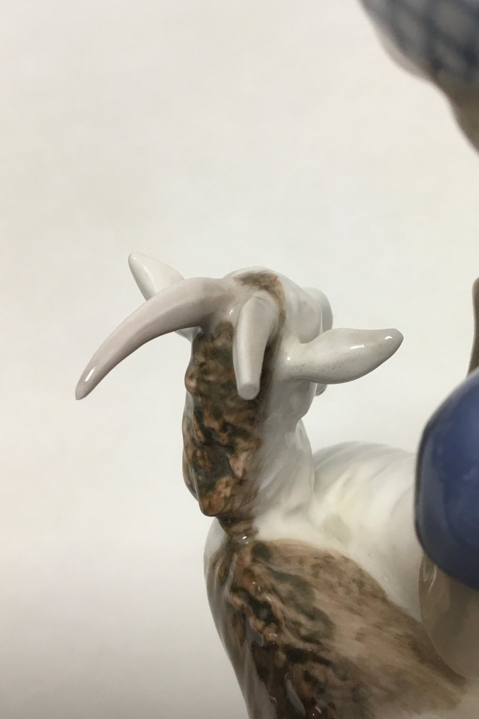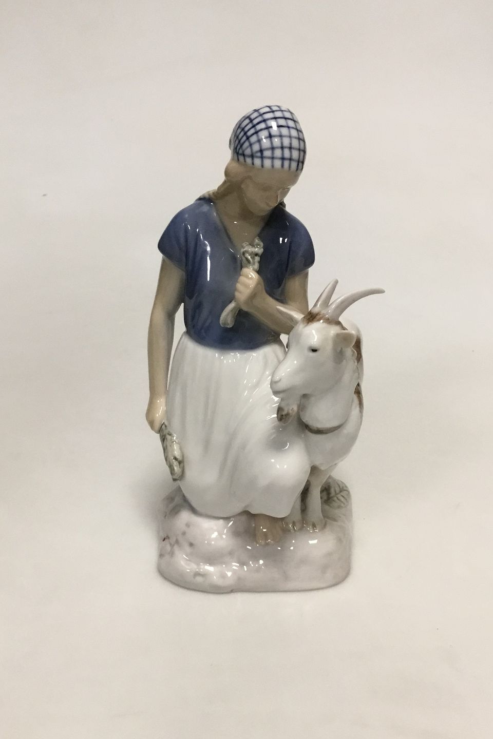 Bing & Grøndahl Figur af Pige med gedebuk No 2180. Designet og signeret af Axel Locher. lille afslag på det ene horn. Måler 18 cm