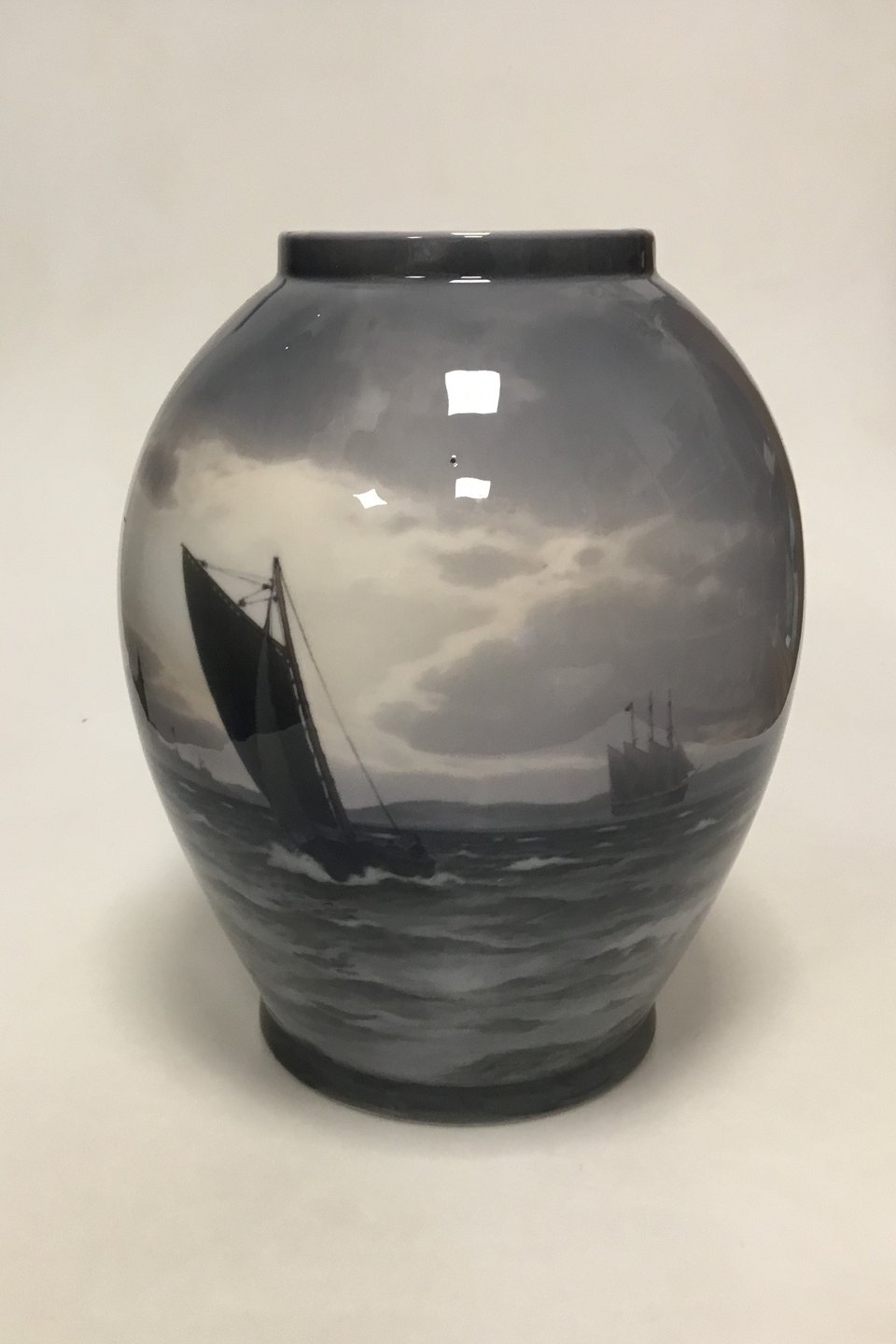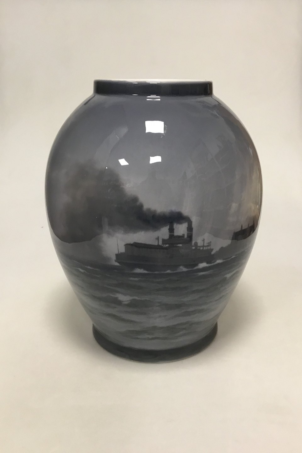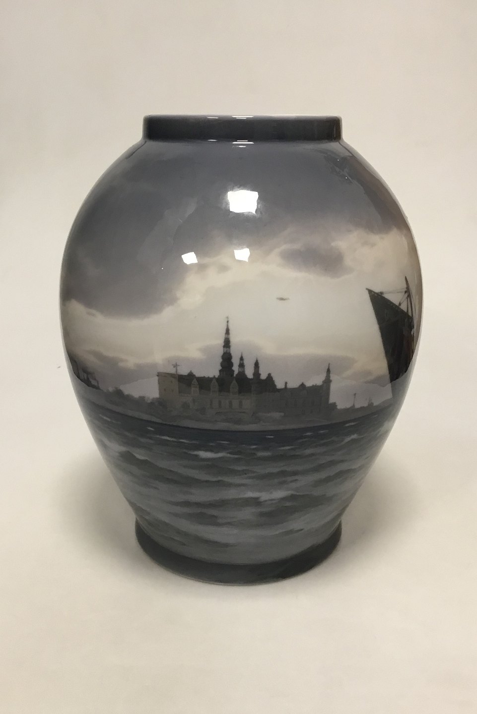 Royal Copenhagen Unique Vase by Christian Benjamin Olsen from May 1913. " Sundet ved Kronborg" ("The Sound at Kronborg Castle")