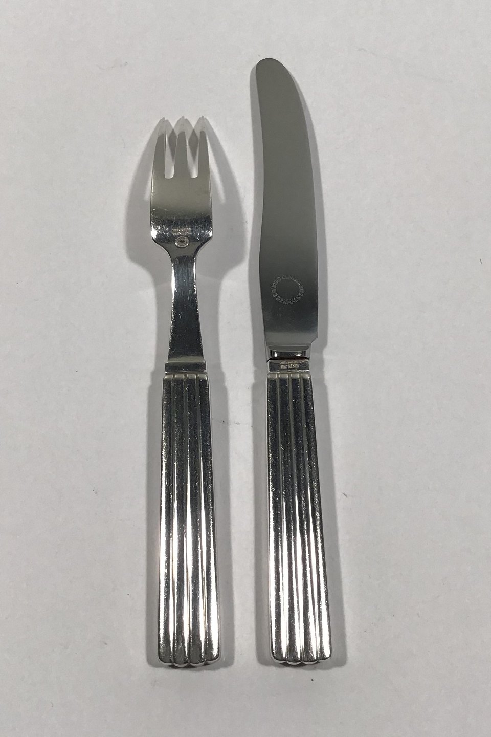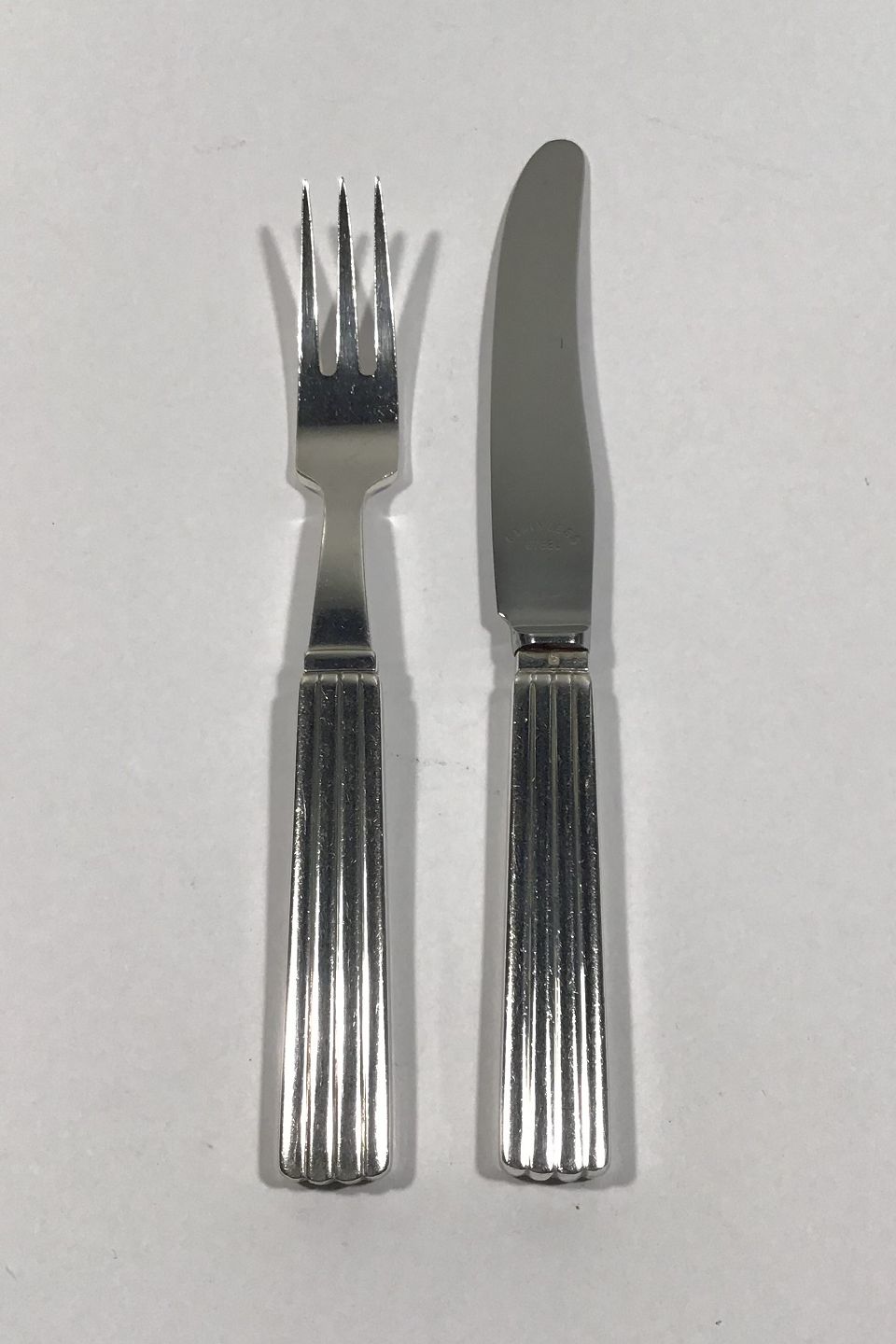 Georg Jensen Sterling Sølv Bernadotte Frugtbestik Måler Kniv 17 cm Gaffel 15.3 cm