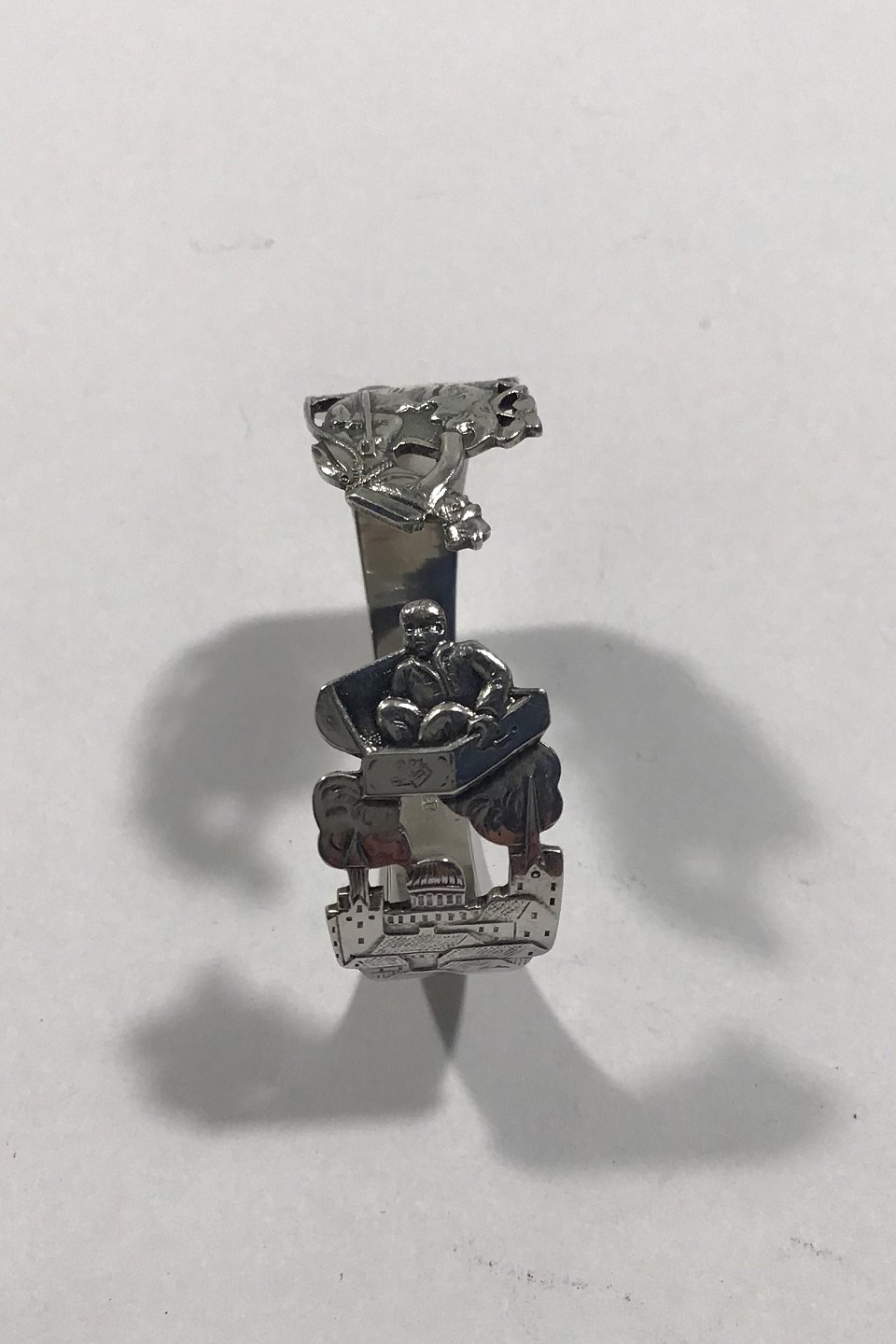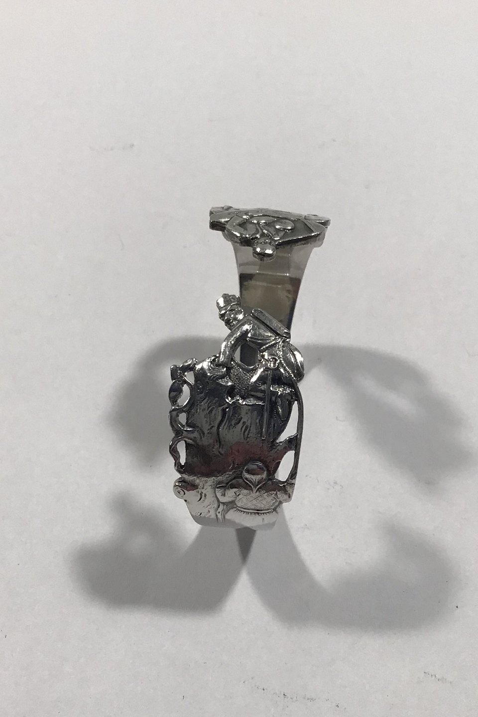 H.C. Andersen Fairytale Napkin Ring in Silver.The Tinderbox and The Flying Trunk Measures 4.8 cm x 3.5 cm(1 57/64 in x 1 3/8in )