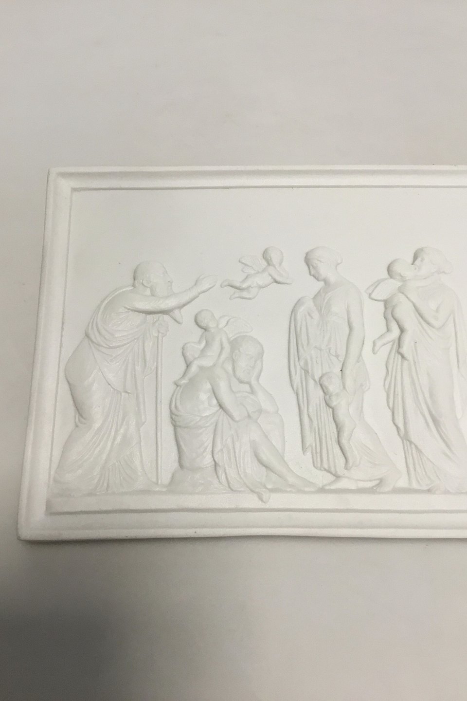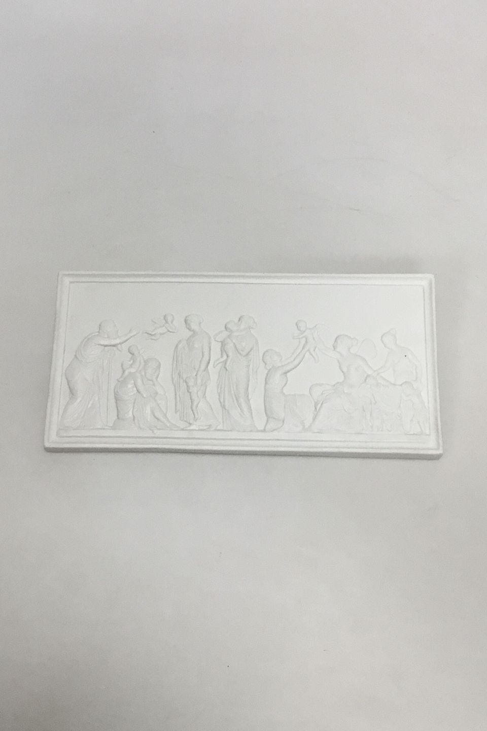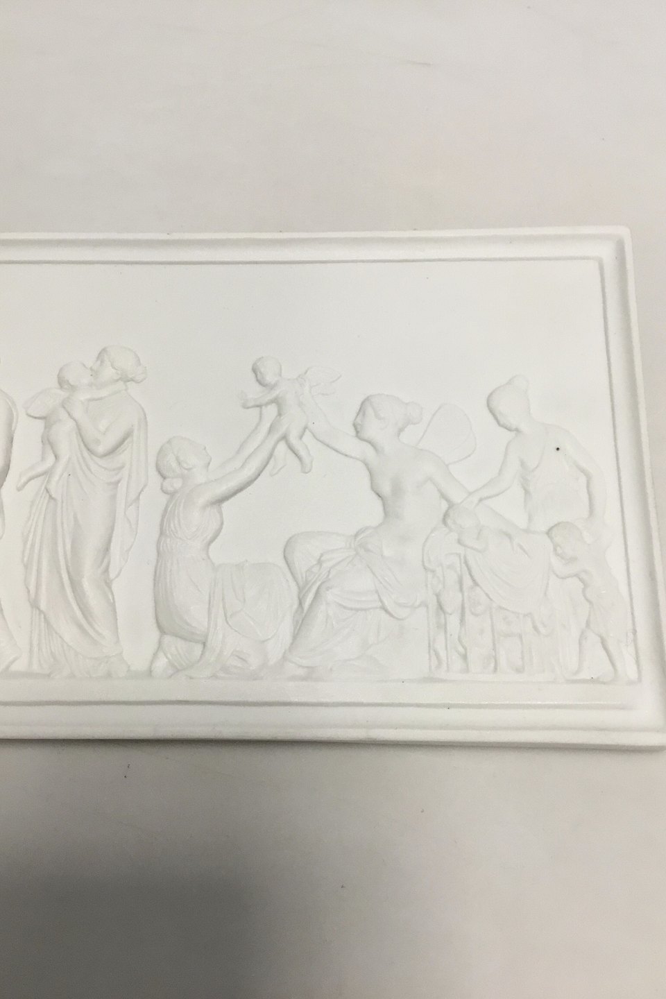 Royal Copenhagen Bisque Plate "The ages of Love" no. 115. Measures 31cm x 12,5cm. Tiny dot-shaped burning flaw, please see picture. Copy by Christian Christensen in 1841, after Thorvaldsens original from Rom 1824.