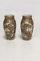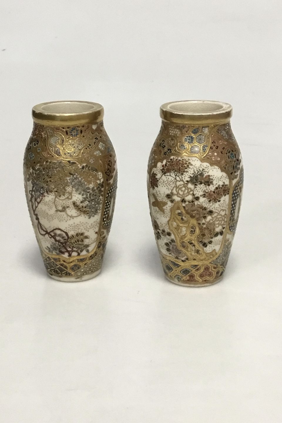 Et par japanske Satsuma vaser, Meiji periode. Dekoreret med tsuba, krysantemum, blomster etc. Usignerede. H: 9, 5 cm