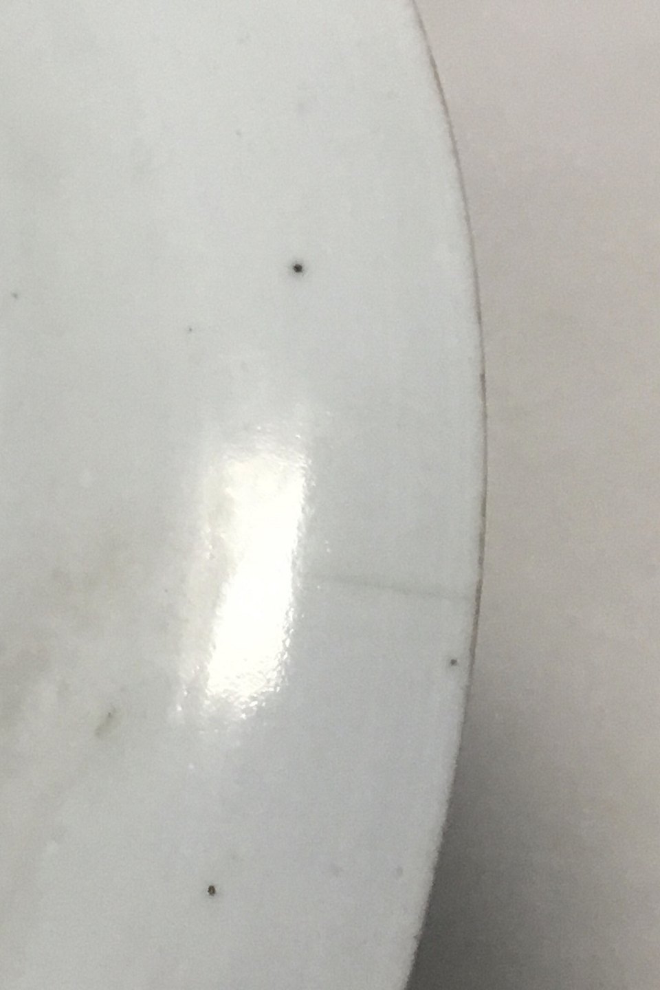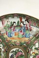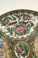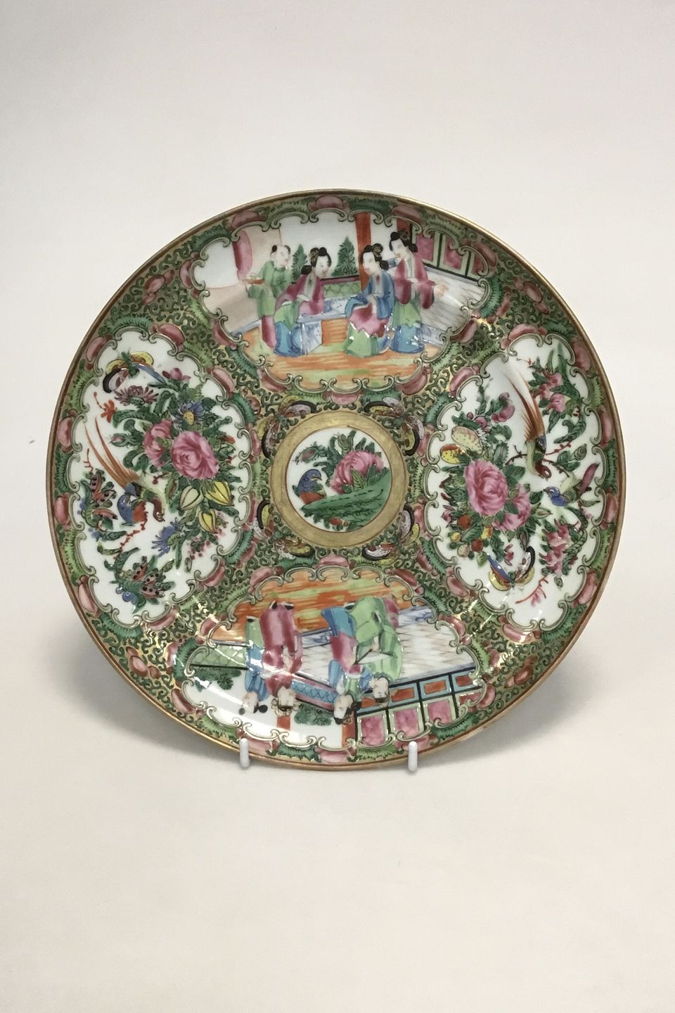 Chinese Canton (gold and green) plate. Palace scenery, birds and butterflies. Ca. 1850. Small hairline and bursted glaze bubble, see pictures. Dia: 24 cm (9 29/64").