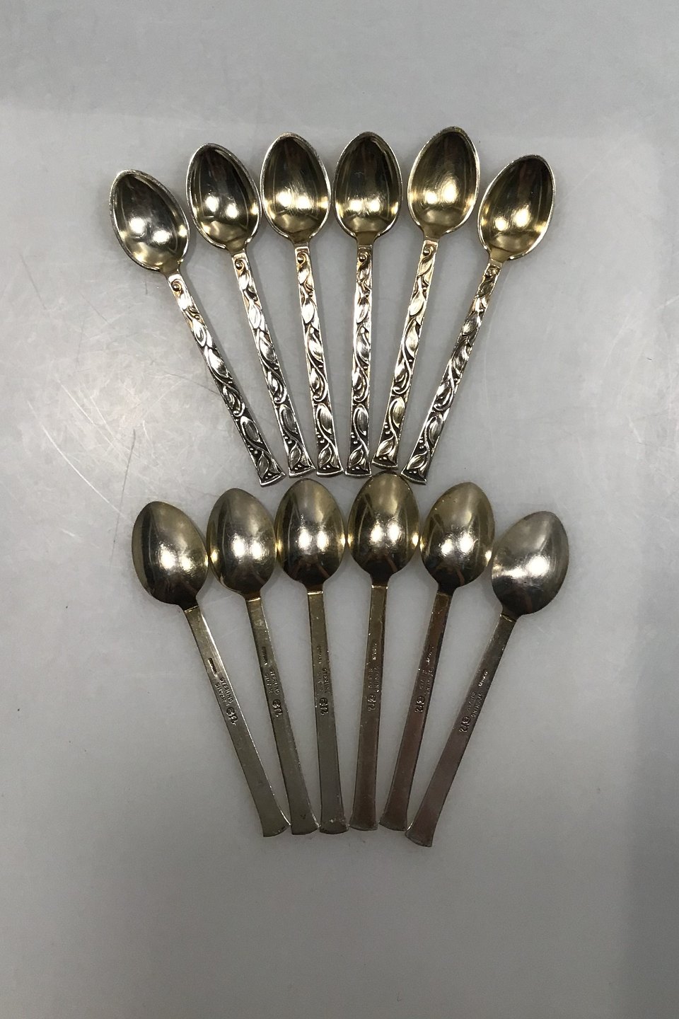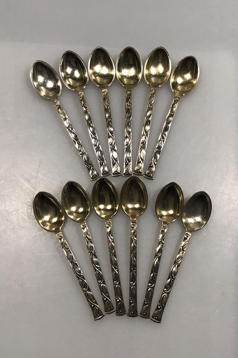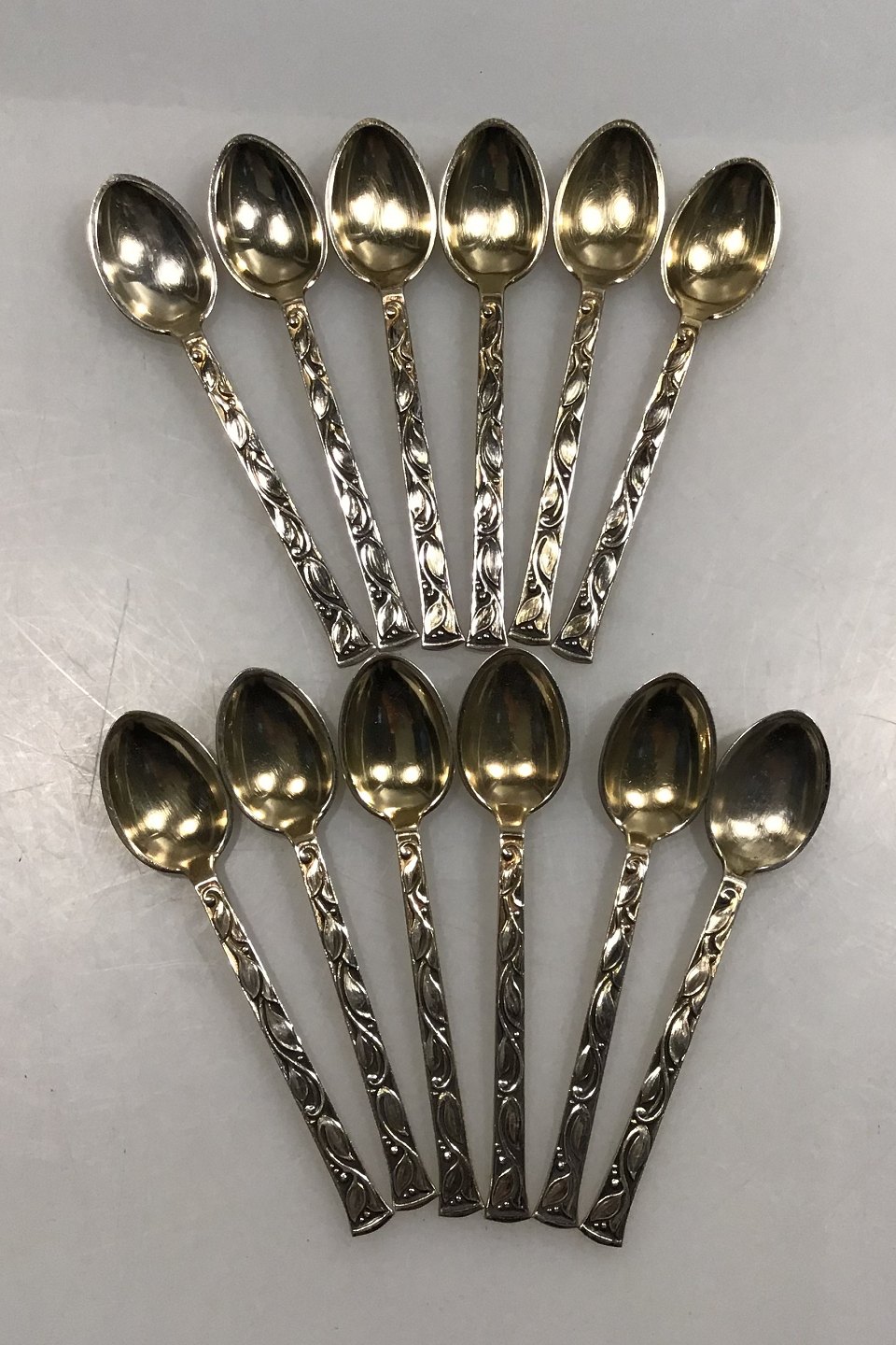 Evald Nielsen Sterling Sølv Kaffeskeer (12)Let forgyldt laf Måler 9.5 cm