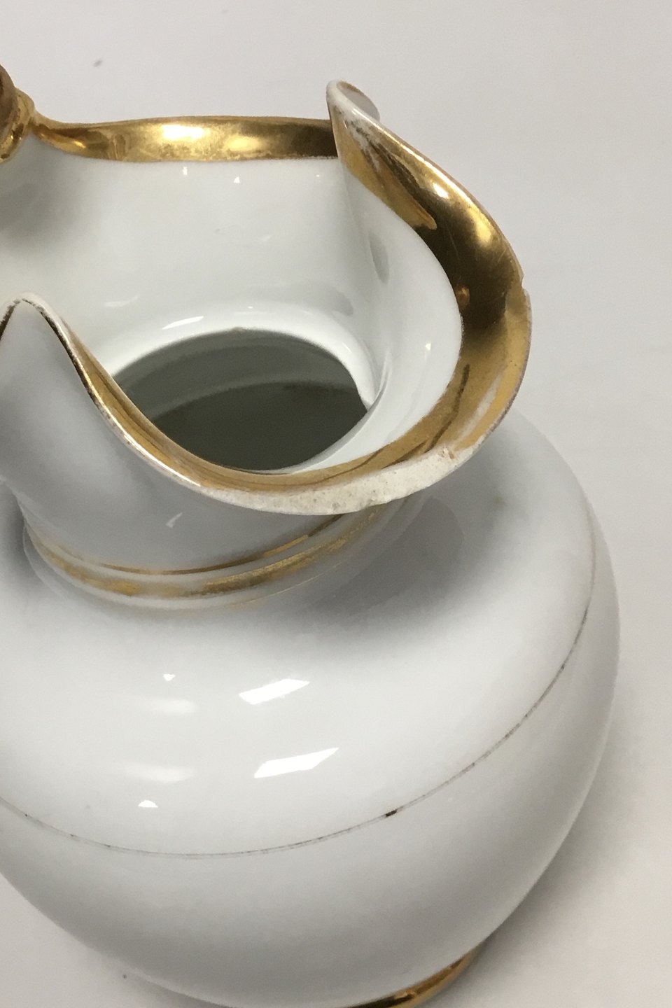 Bing & Grondahl Lion Chocolate Ewer, gold painted, without lid. Stamped B & G in under glaze blue. Several damages, please see pictures. H: 26 cm (10 15/64")