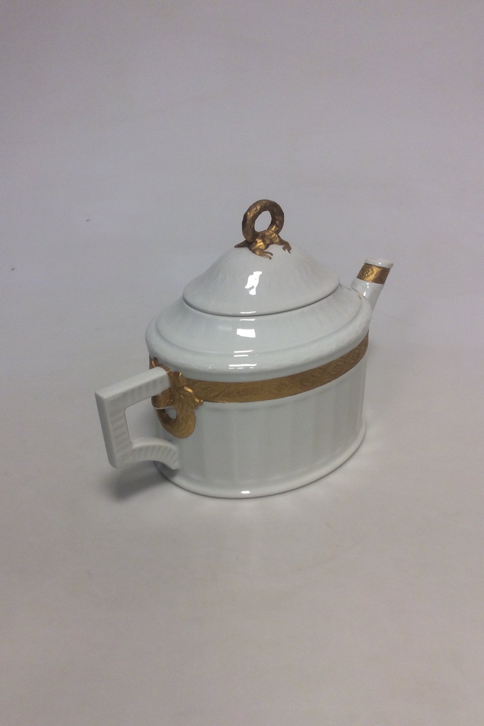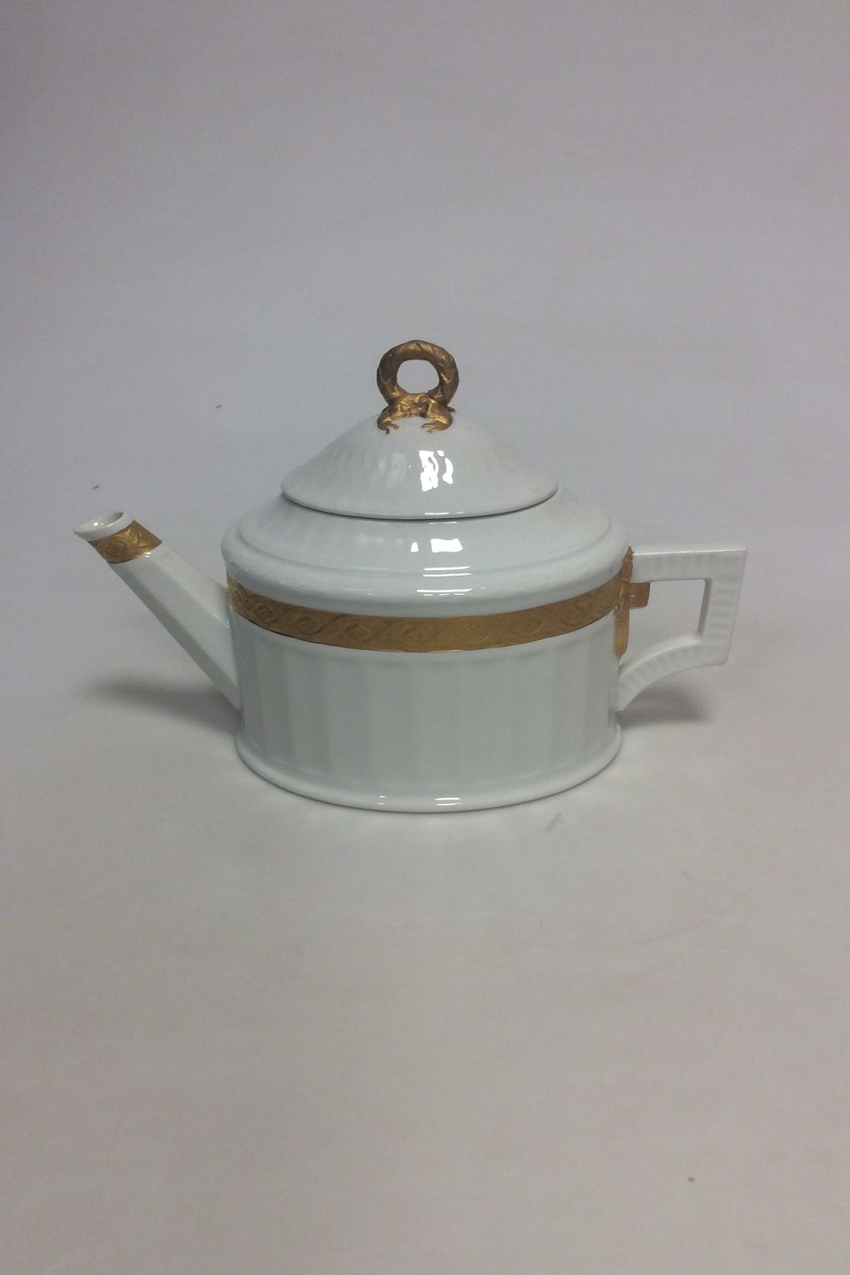 Royal Copenhagen Guld Vifte Thekande med låg No 11566. Måler 90 cl 17 x 27 cm. I perfekt stand.
