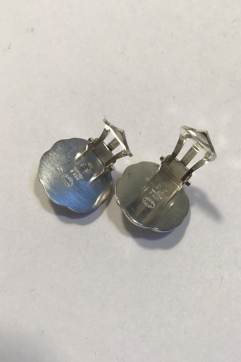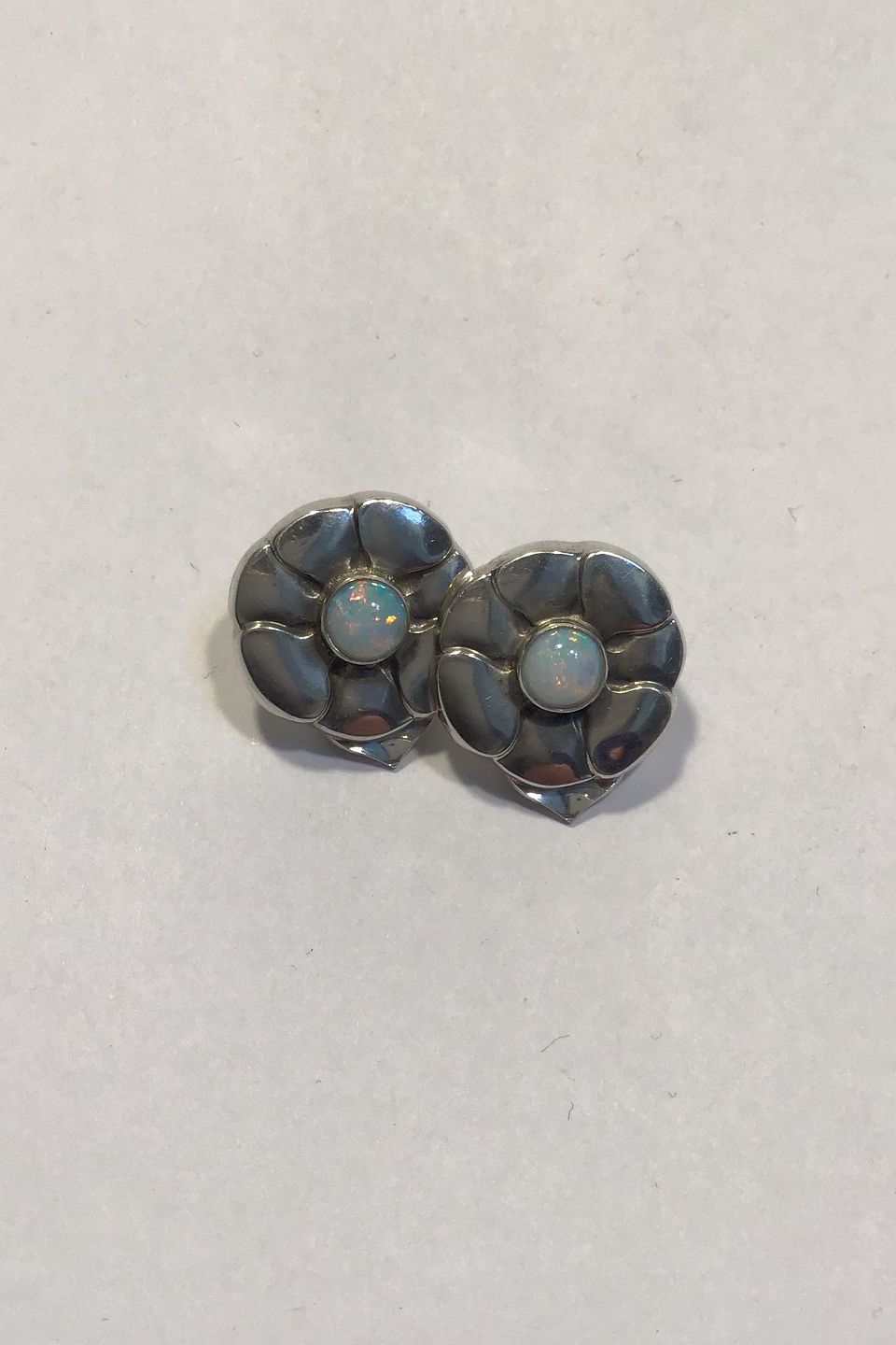 Georg Jensen Sterling Sølv Øre clips No 36 Opal Måler Diam 1.6 cm Samlet Vægt 10 gr