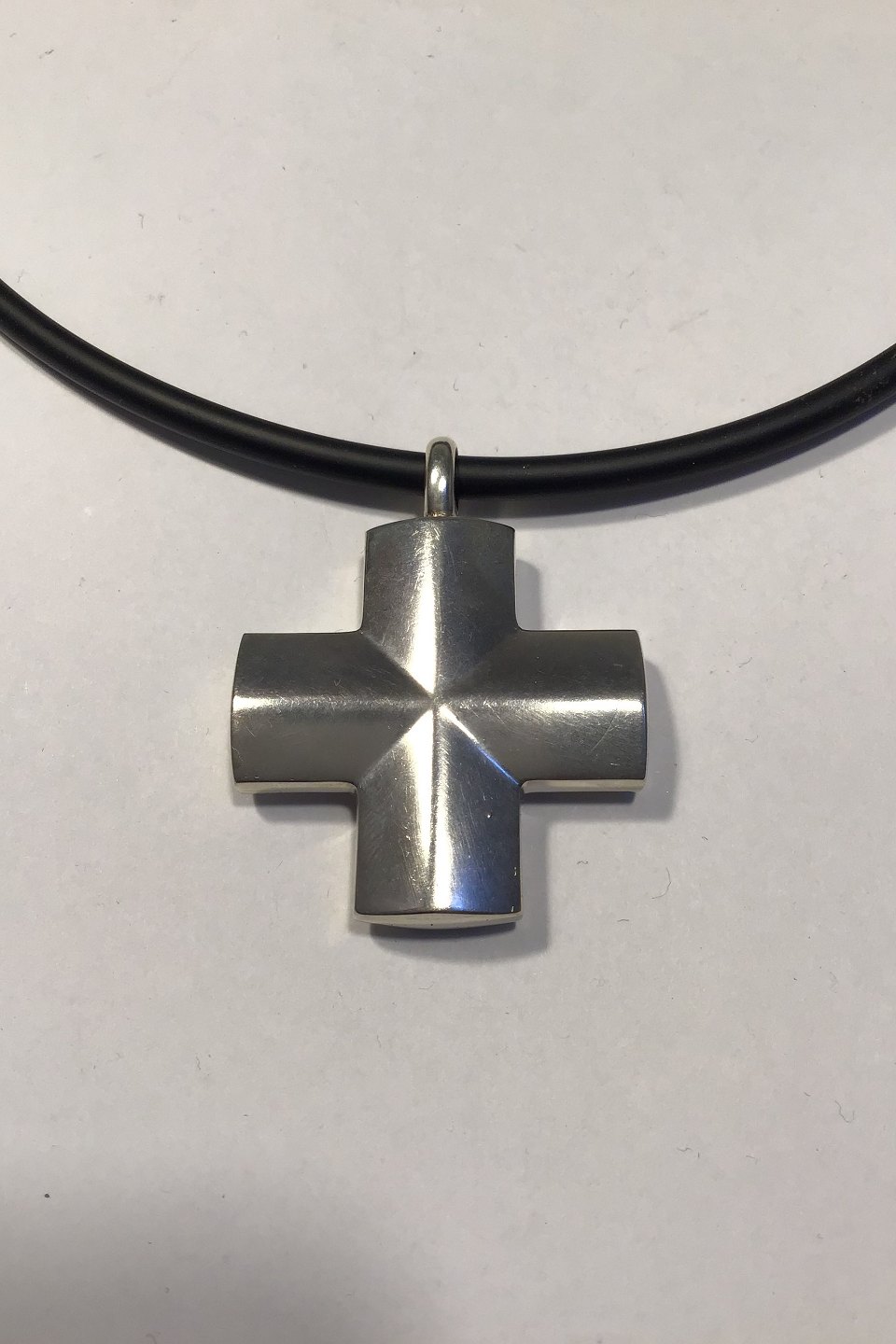 Georg Jensen Gummihalskæde med Sterling Sølv Vedhæng No 260B Vedhæng 3.8 cm x 4.8 cm Vægt 17 gr Kæde L 42 cm