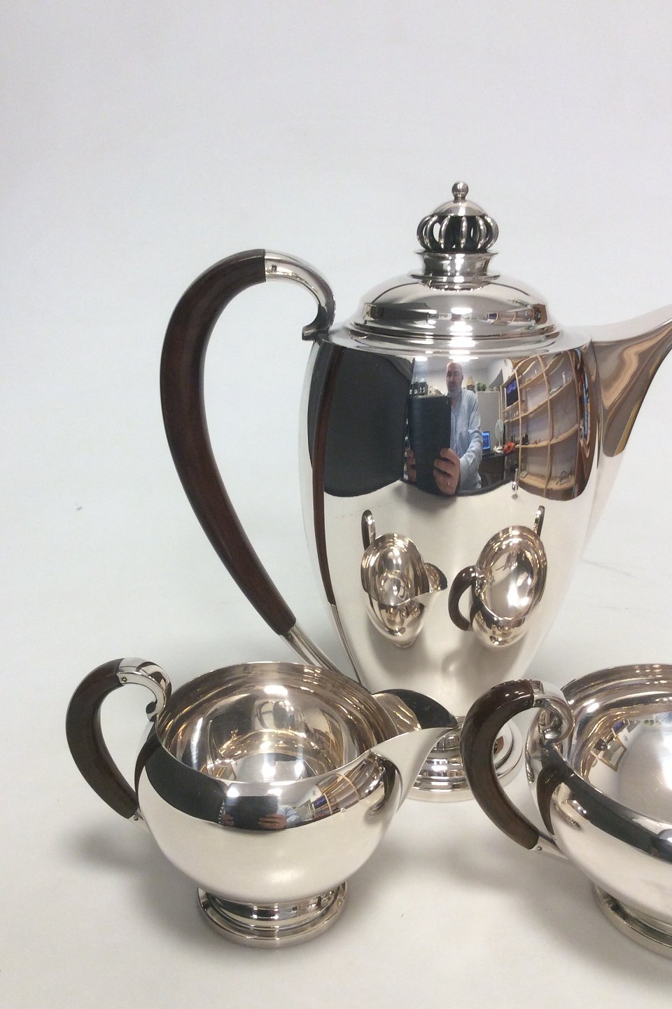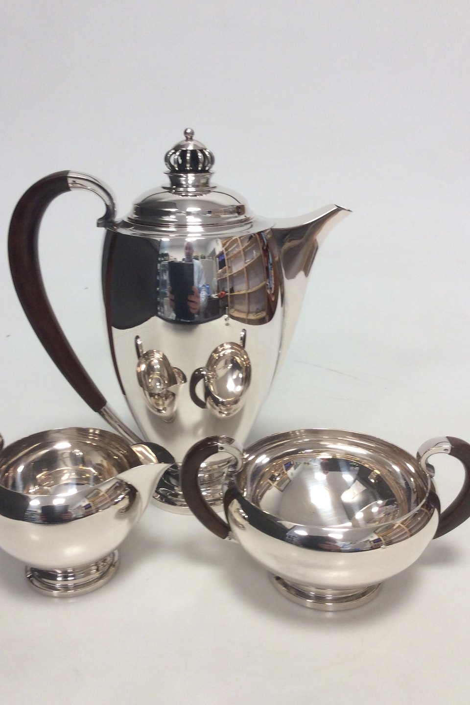 Theodor Sabroe Art Deco Danish Silver Coffee Set with Pot, creamer and sugar bowl from 1942