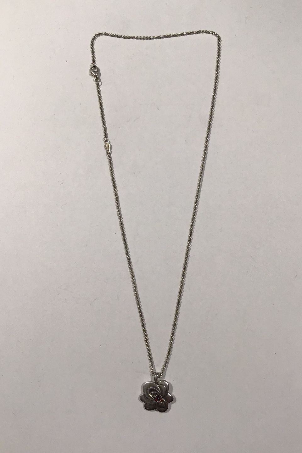 Georg Jensen Sterling Silver Necklace with Pendant No 263 with garnet Measures 44 cm (17 21/64 in)Weight 7.3gr/0.26 oz