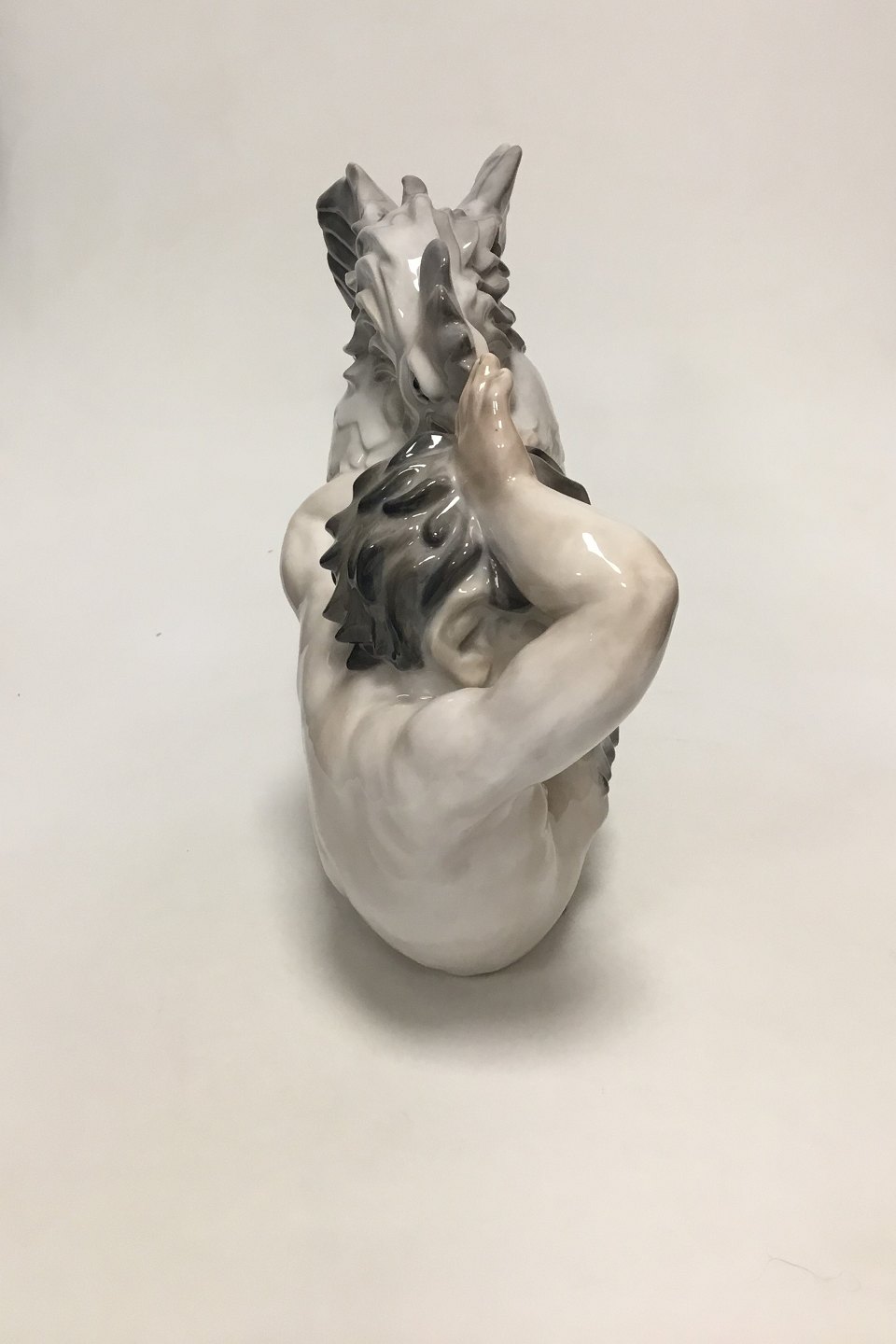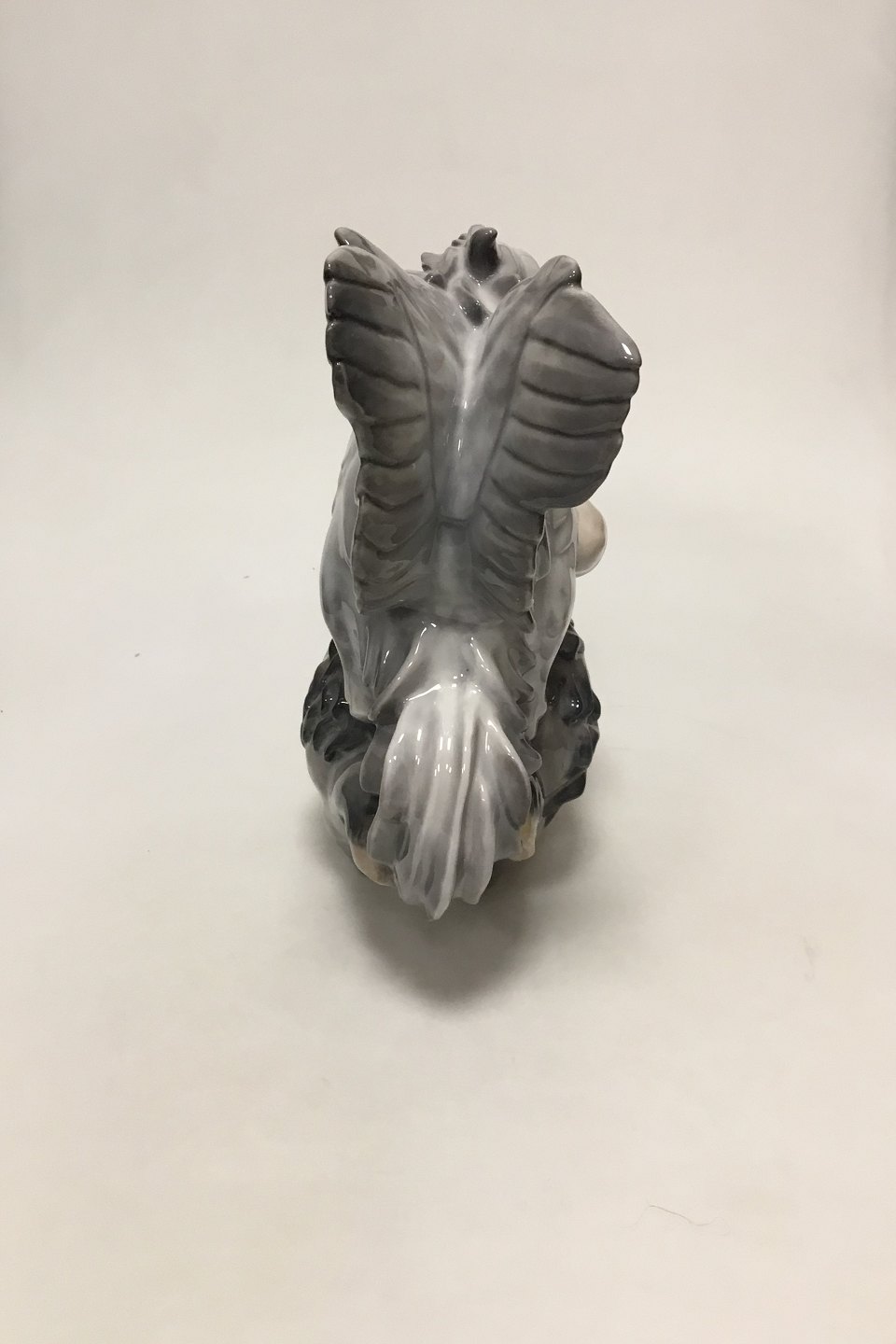 Royal Copenhagen Figur af Faun i kamp med en hane No 3083. Signeret KK for Knud Kyhn. Måler 30 cm x 32 cm. 1. Sortering og i rigtig flot stand.