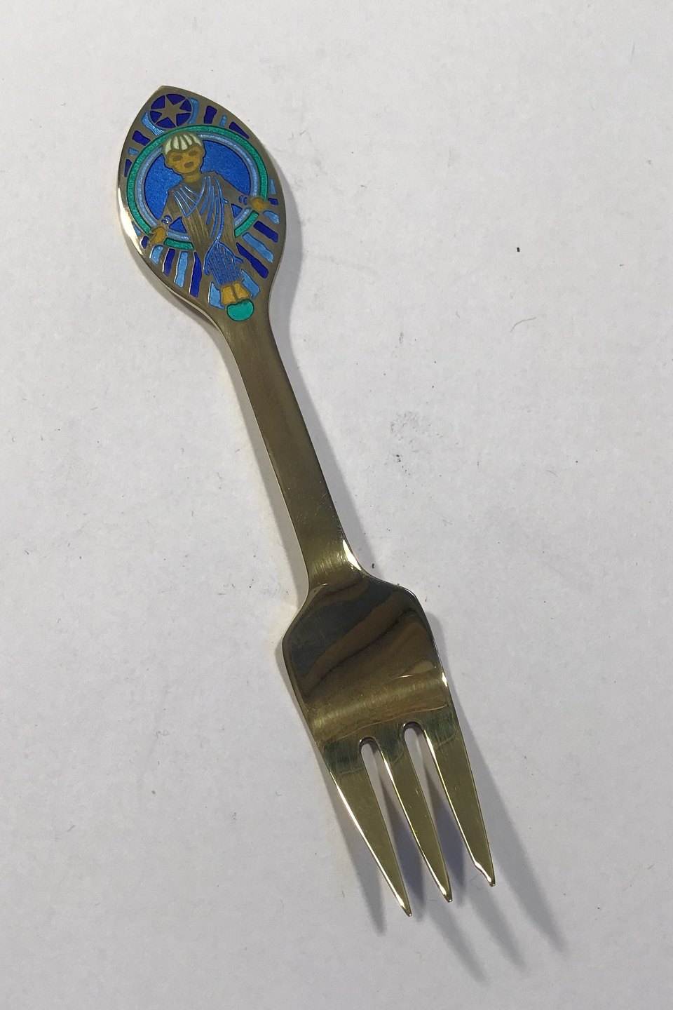Anton Michelsen Christmas Pastry Fork 1984 Gilded Sterling Silver with Enamel