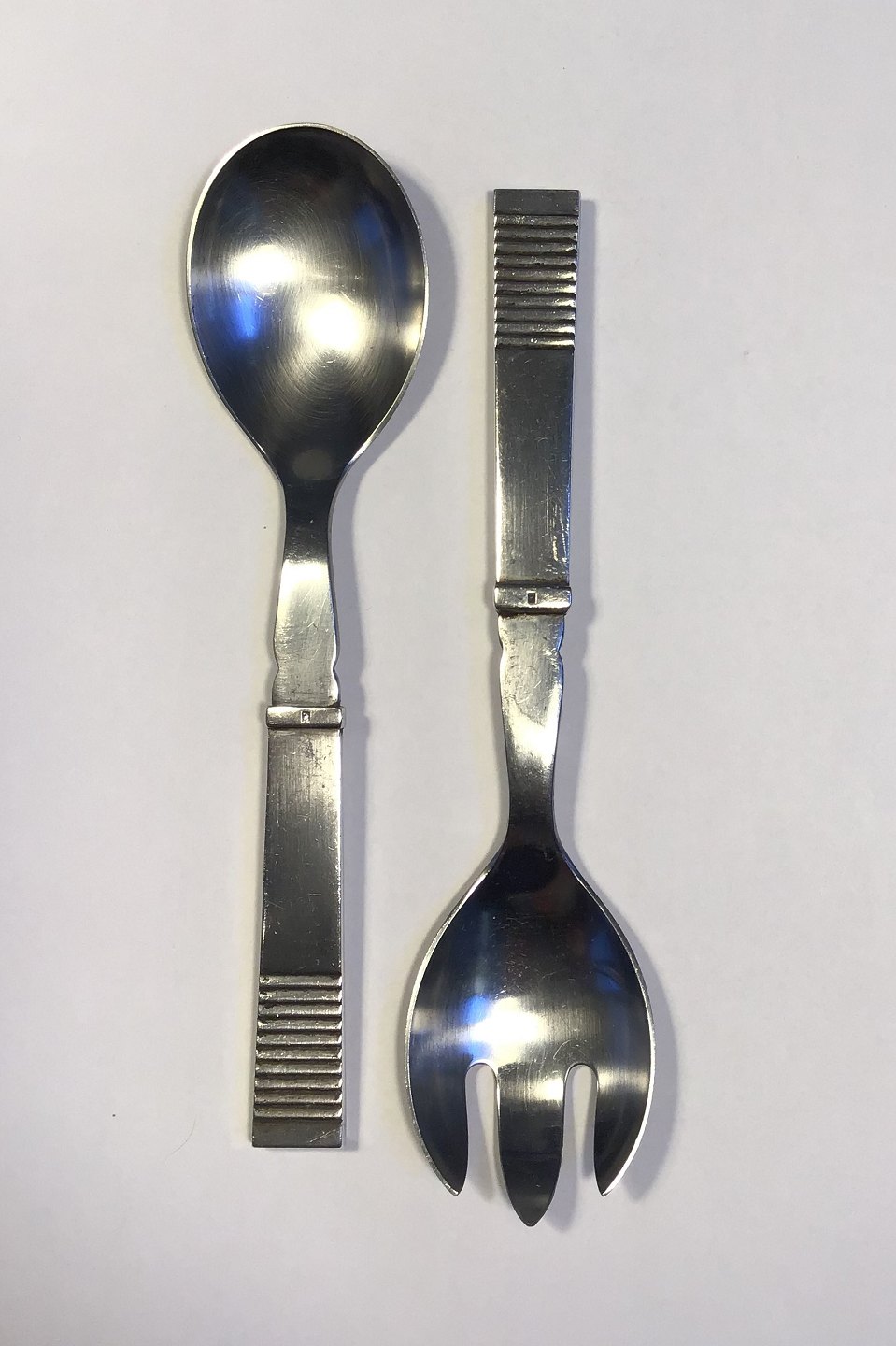 Georg Jensen Sterling Sølv Relief Salat Sæt No 133 Måler 19.4 cm