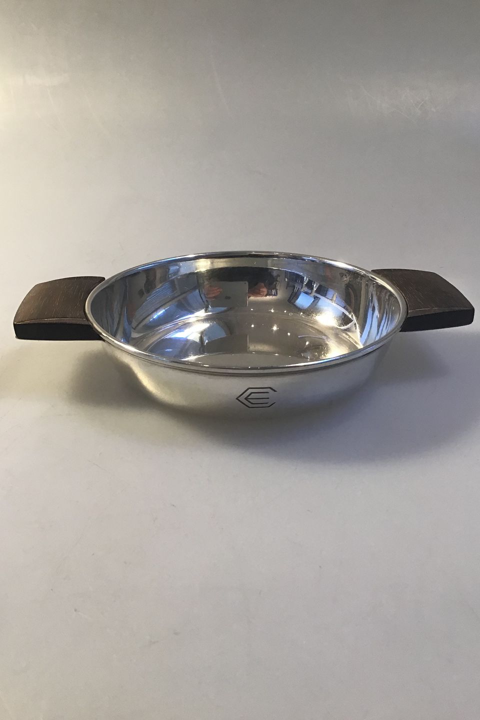 Fransk Sølv Øreskål (950) Træhåndtag Gravering Måler H 3 cm Diam 12 cm Vægt 126.6 gr