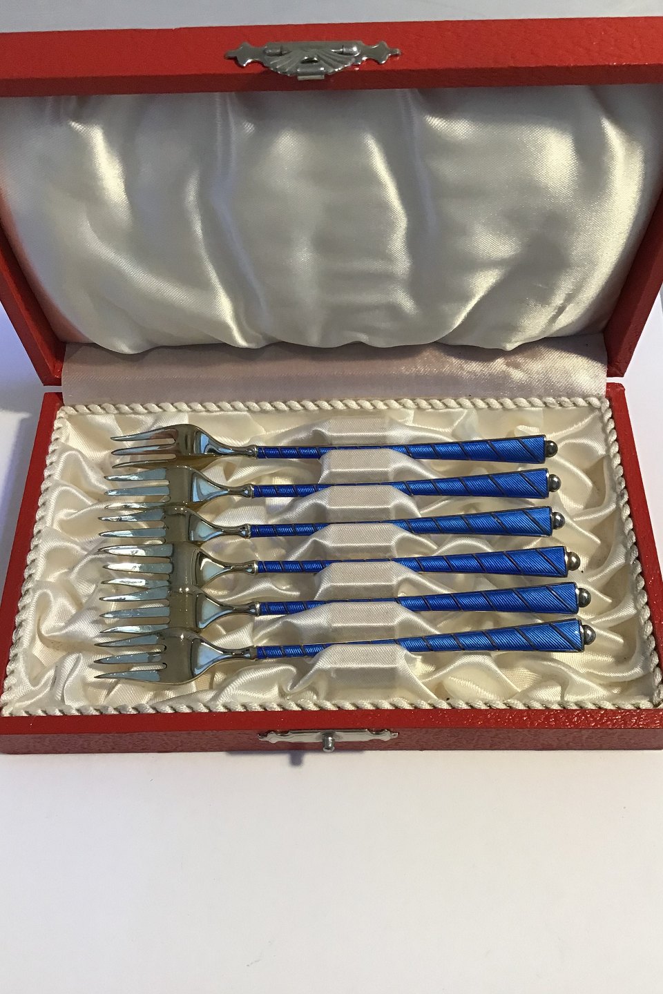 Egon Lauridsen(ELa) Sterling Silver/Enamel Oyster Forks, gilt (6) Measures 12 cm (4 23/32 in) Boxed
