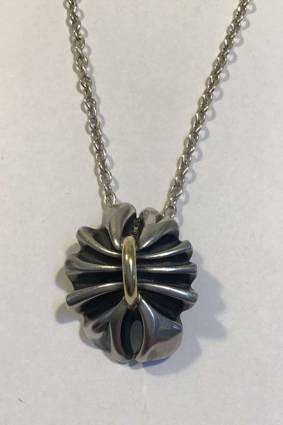 Georg Jensen Sterling Silver and 18K Gold Lene Munthe Necklace No 400 Measures Chain 74 cm(29 9/64 in) Pendant 3.2 cm x 2.5 cm (1 17/64 in x 1 in) Combined Weight 27.8 cm/0.98 oz