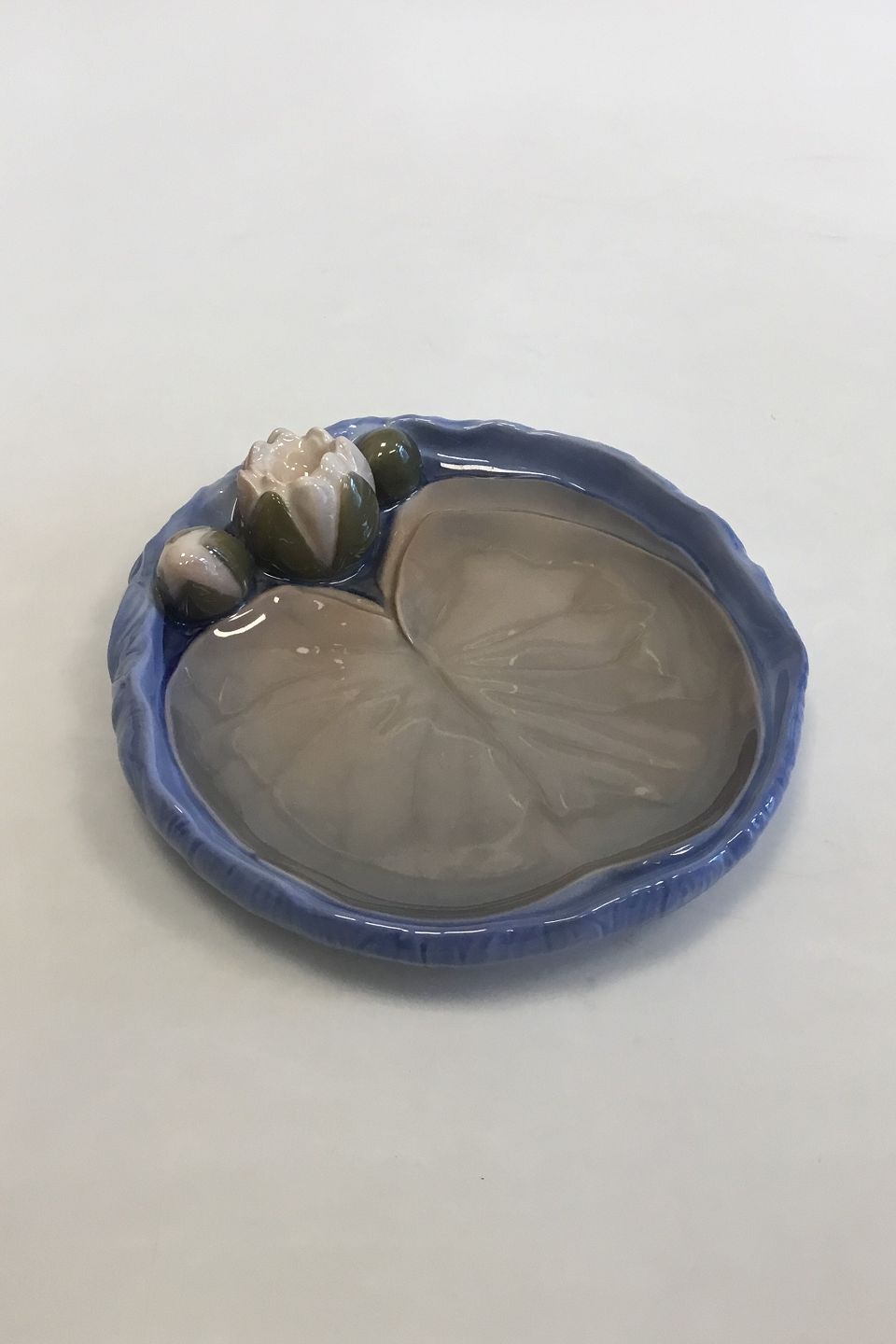 Royal Copenhagen Art Nouveau Low Dish with Nymphea No 2360. Measures 18 cm x 17 cm (17 3/32 in. x 6 11/16 in.)