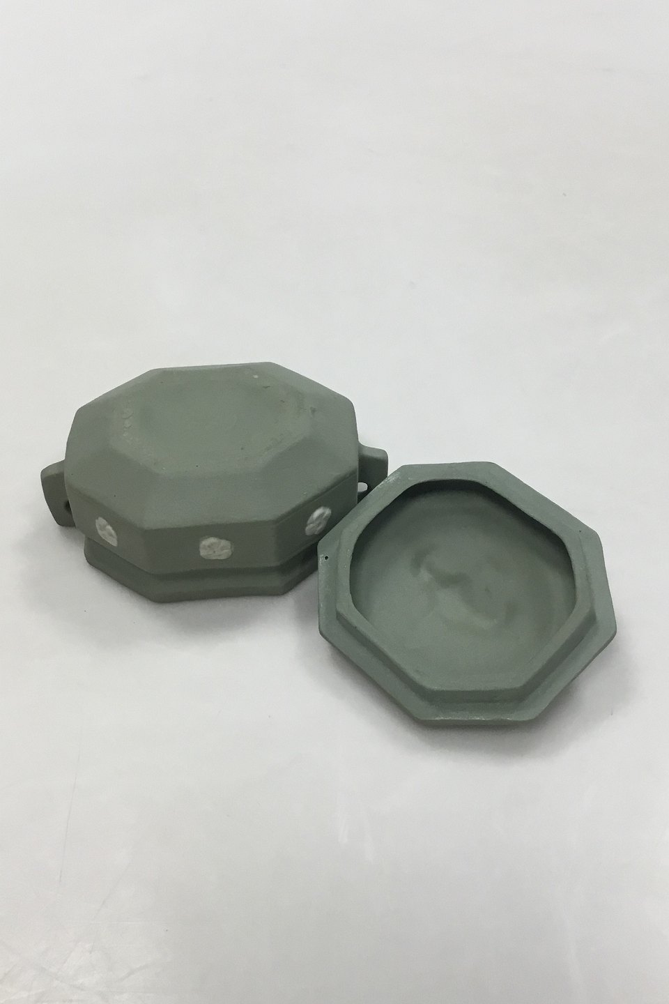 Wedgewood Small green bonbonniere decorated with flowers / 3 47/64 in.