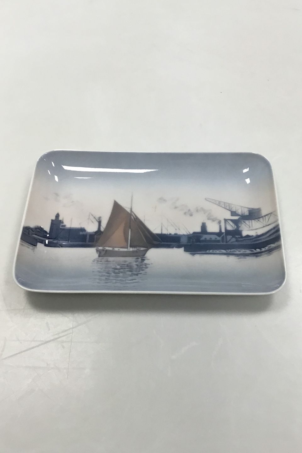 Bing & Grøndahl Skål 1300 Serie Tuborg Havn No 6581. Måler 13 cm x 19,5 cm(5 1/8 in. x 7 43/64 in.)