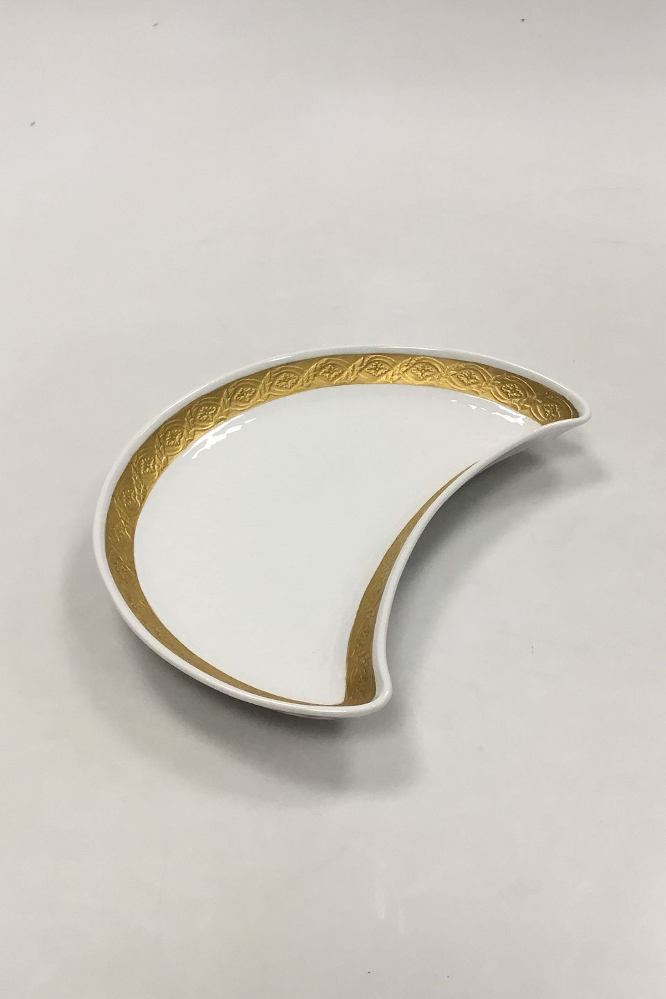 Royal Copenhagen Guld Vifte Halvmåneformet Fad No 11551. Måler 21 cm (8 17/64 in.)