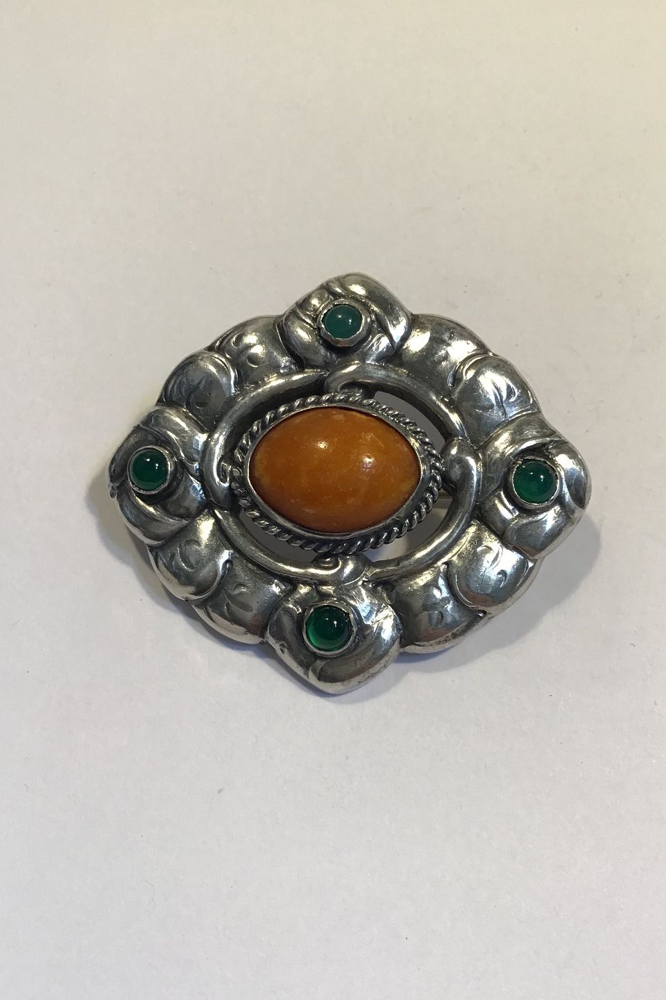Danish Silver Grann og Laglye with Amber and Chrysoprase Meaasures 4.5 cm x 5.2 cm(1 49/64 in x 2 3/64 in) Weight 15.2 gr/0.54 oz