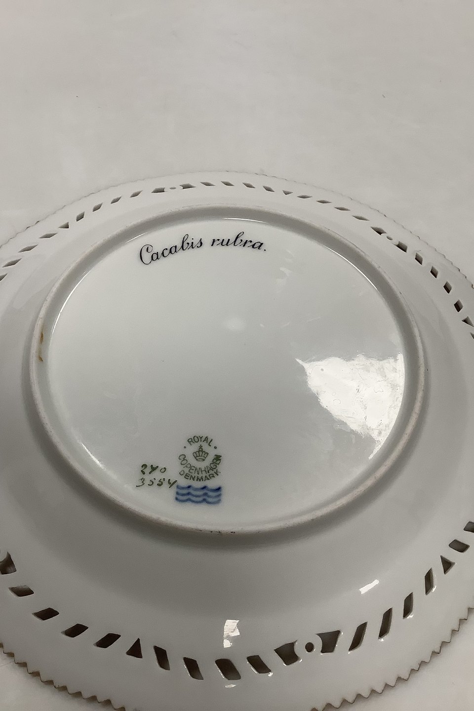 Royal Copenhagen Flora Danica Fugle Frokosttallerken No 20/3554 med gennembrudt kant.
