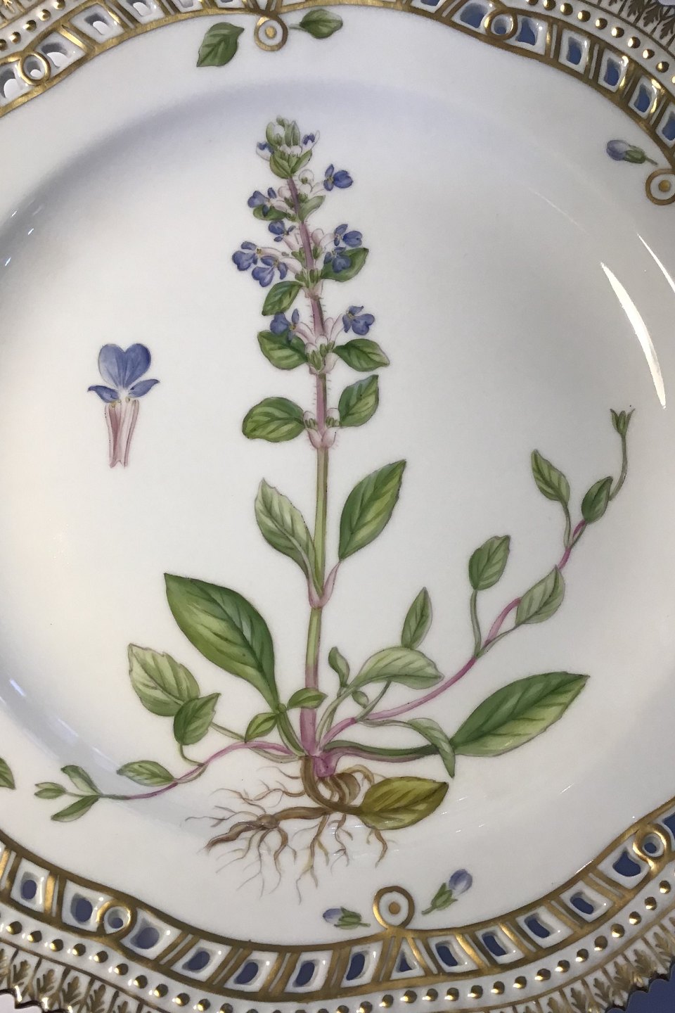Royal Copenhagen Flora Danica Plate with pierced border No 20/3553. Latin name: Ajuga reptans L. Måler 25.5 cm / 10 3/64 in.