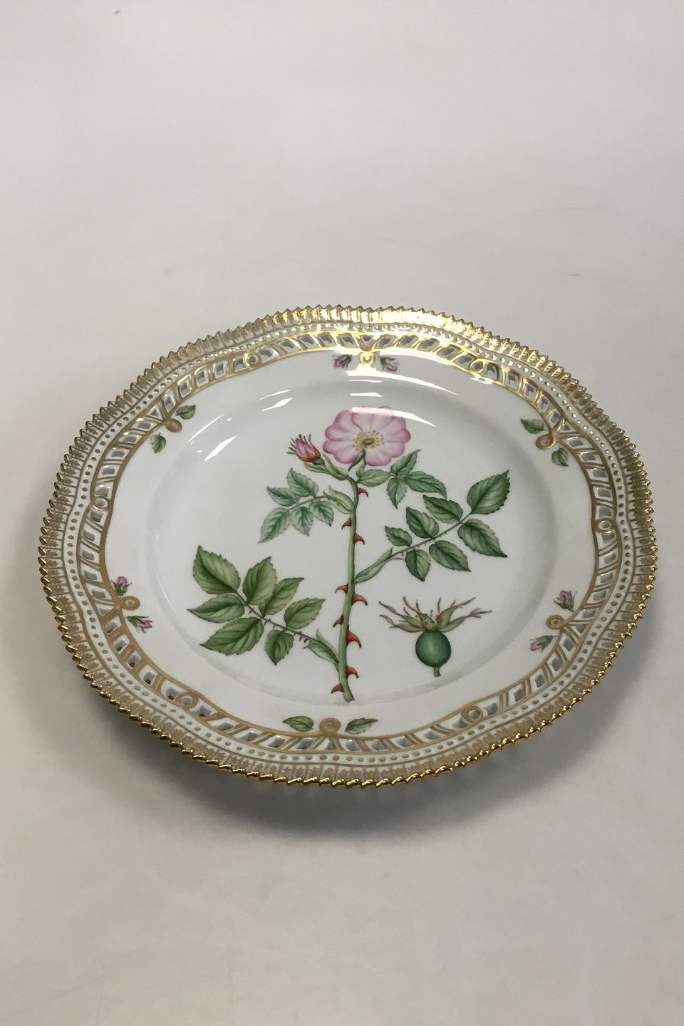 Royal Copenhagen Flora Danica Plate with pierced border No 20/3553. Latin name: Rosa canina L. Måler 25.5 cm / 10 3/64 in.