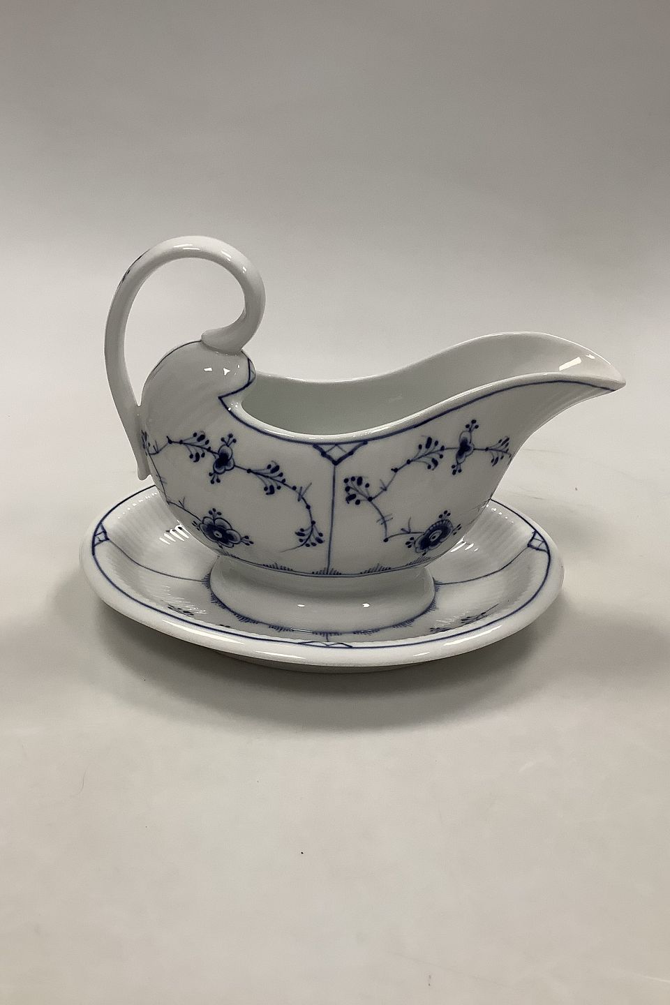 Royal Copenhagen Blue Fluted Gravy Pitcher with underplate No 201