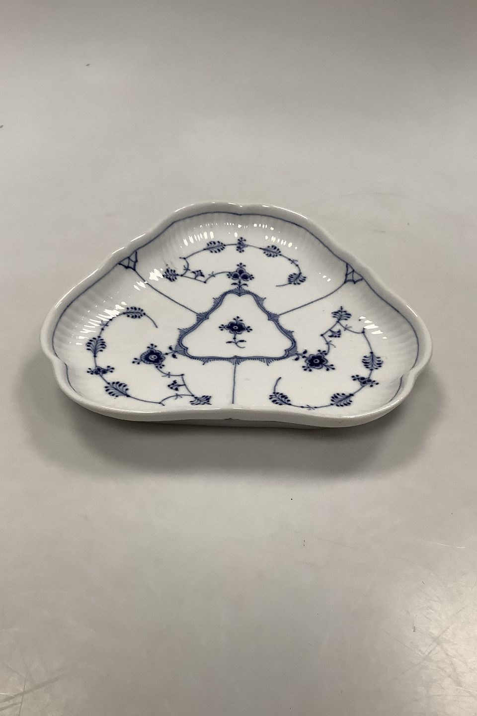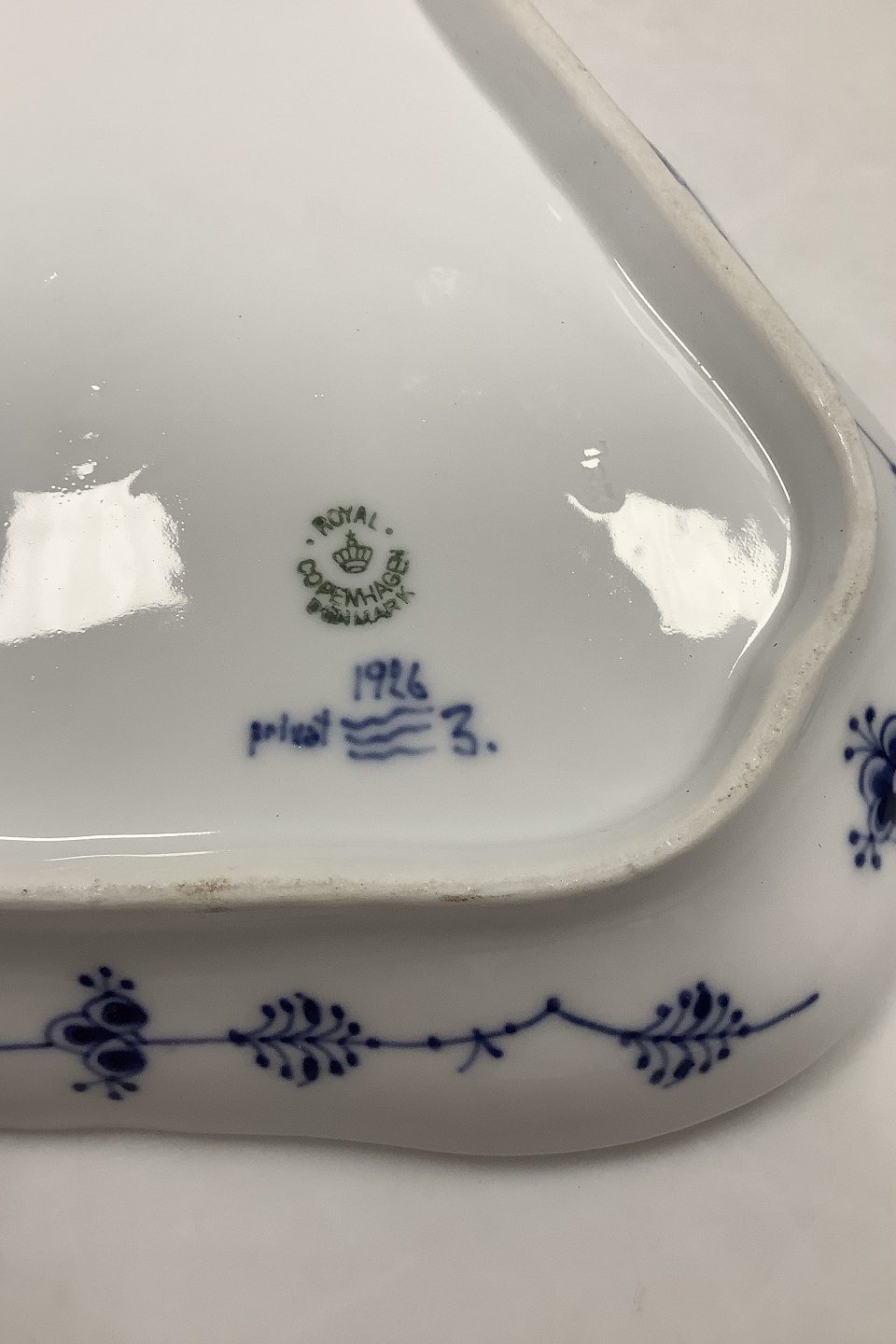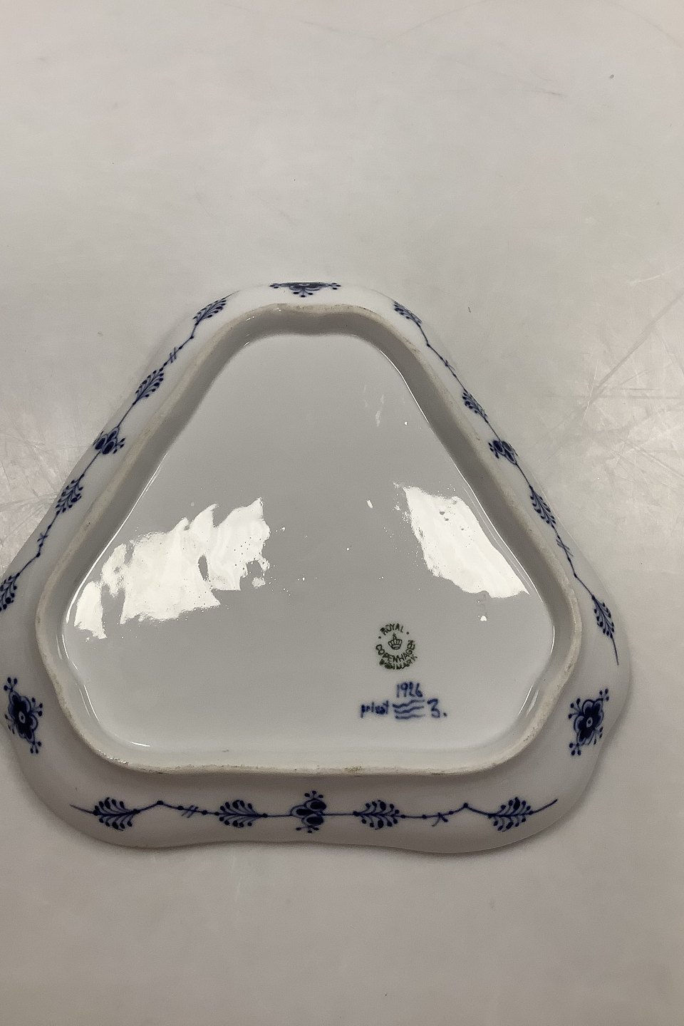 Royal Copenhagen Musselmalet Riflet Trekantet fad privat malet fra 1926