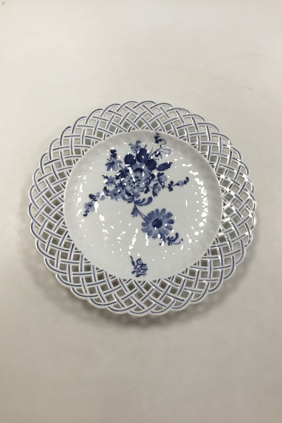Royal Copenhagen Blå Blomst Svejfet Gennembrudt Tallerken. Måler 25,5 cm (10 3/64 in).