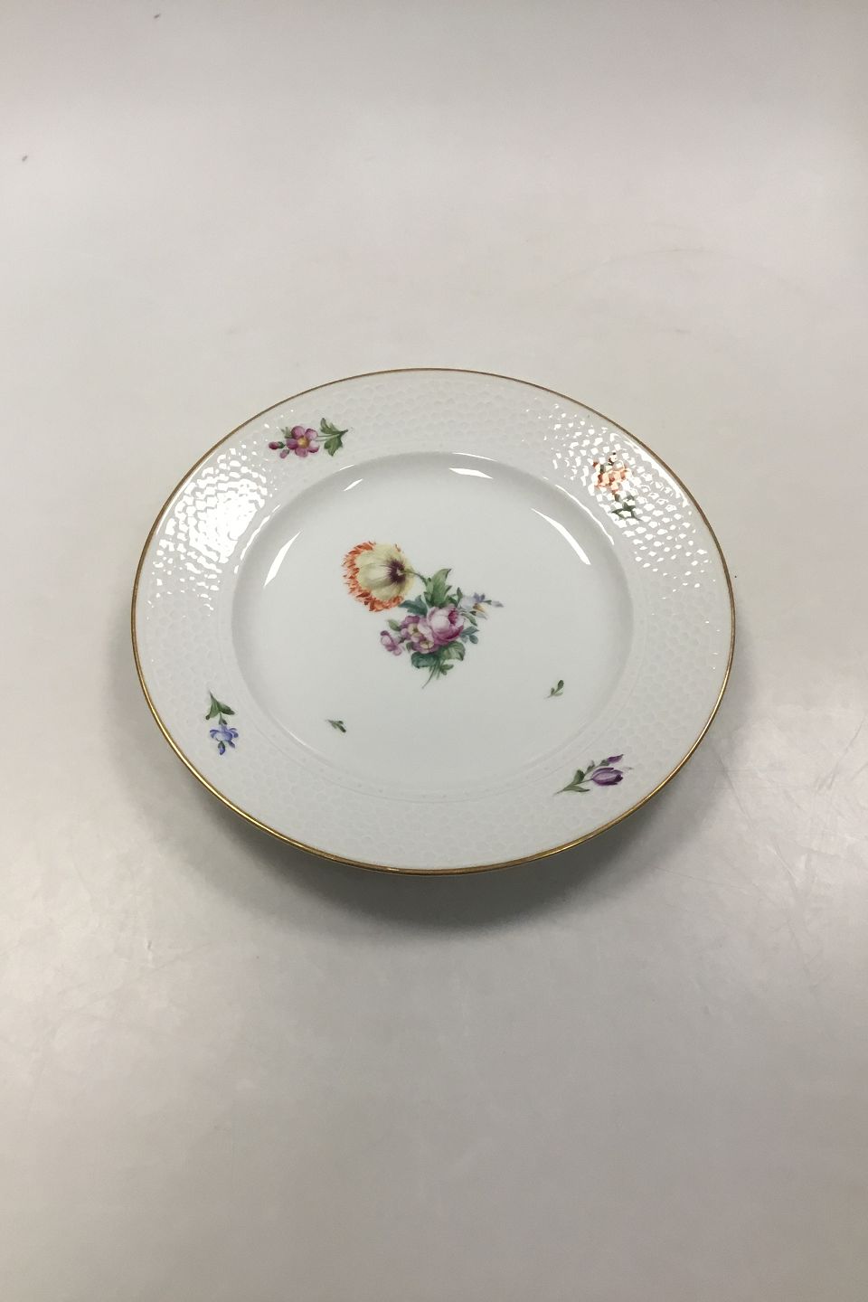 Royal Copenhagen Saksisk Blomst Let Bicelle Frokosttallerken No 493/2069. Måler 23,7 cm (9 21/64 in).