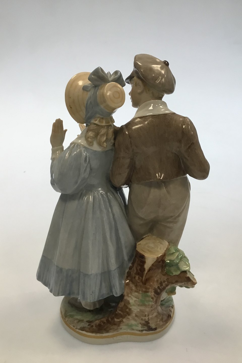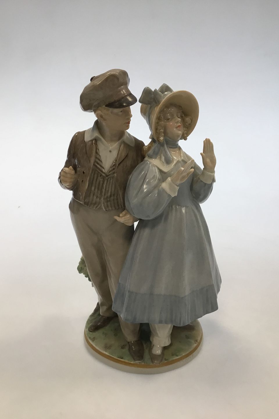 Royal Copenhagen Juliane Marie Overglasur figur No 1783 Hans og Trine. Måler 23,5 cm (9 1/4 in). 1. Sortering designet af Chr. Thomsen. Knækkede fingre på højre hånd.