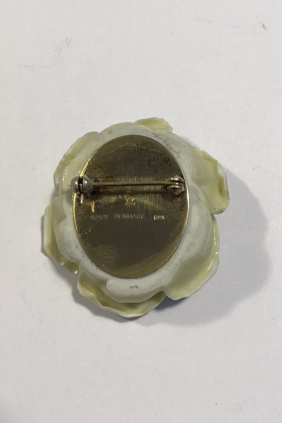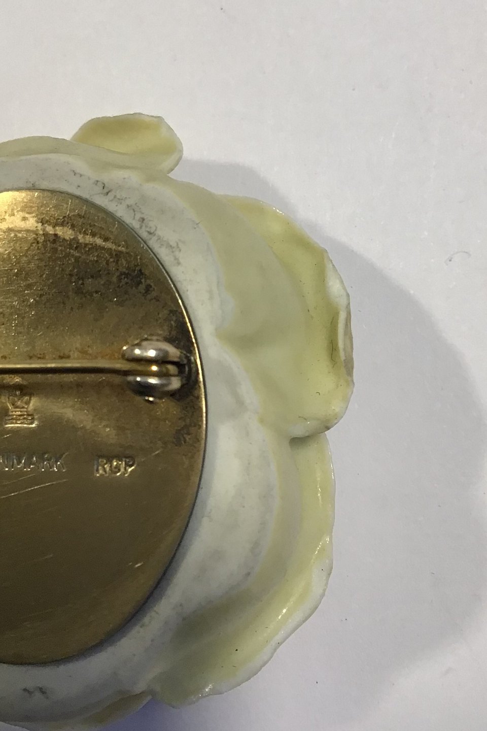Royal Copenhagen Arje Griegst Porcelænsbroche "Rosendamen" Måler 4 cm x 4.5 cm (1 37/64 in x 1 49/64 in)(Lille afslag bagpå blad)