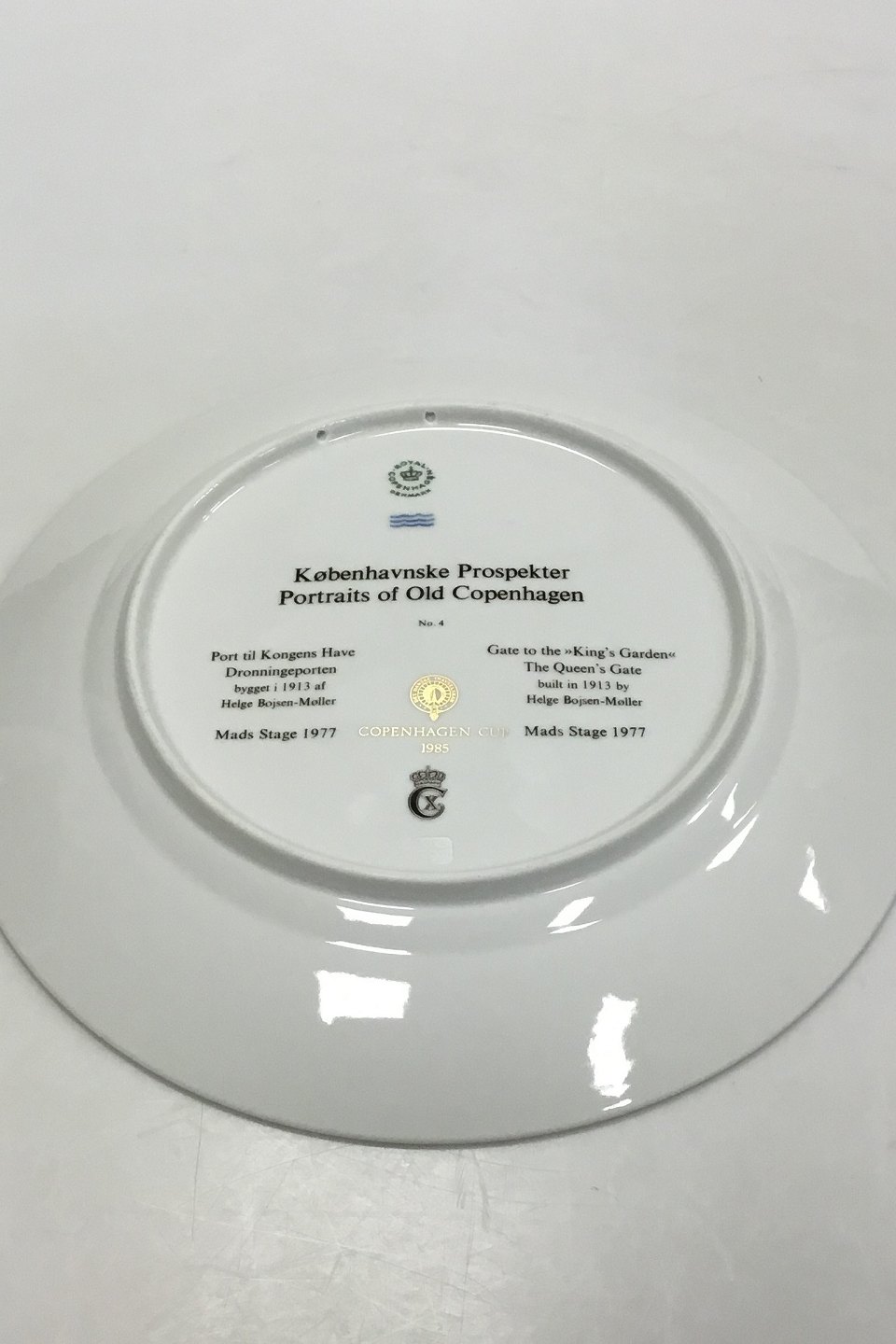 Royal Copenhagen Plate Portraits of Old Copenhagen Gate to the Kings Garden The Queens Gate No 4. Mads Stage 1977. Measures 27.5 cm / 10 53/64 in.