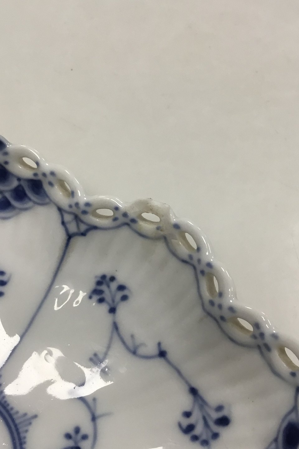 Royal Copenhagen Blue Fluted Full Lace Leaf Shaped Dish No 1076. 1st Quality. Measures 18.5 cm / 7 9/32 in. With a chip on the edge