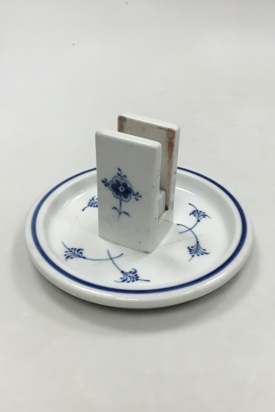 Bing og Grøndahl Blåmalet/Musselmalet Hotel Tændstikæskeholder. Måler 16 cm ( 6 19/64 in. ). Har en hårkarrevne