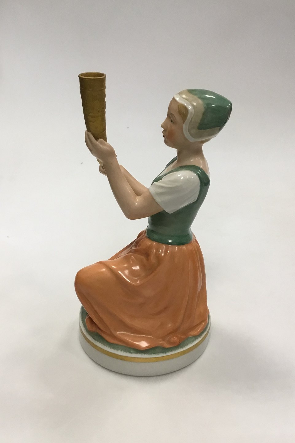 Royal Copenhagen Figurine Girl with the Horn of Gold No 12242. Measures 22 cm / 8 21/32 in. Designed by Holger Christensen