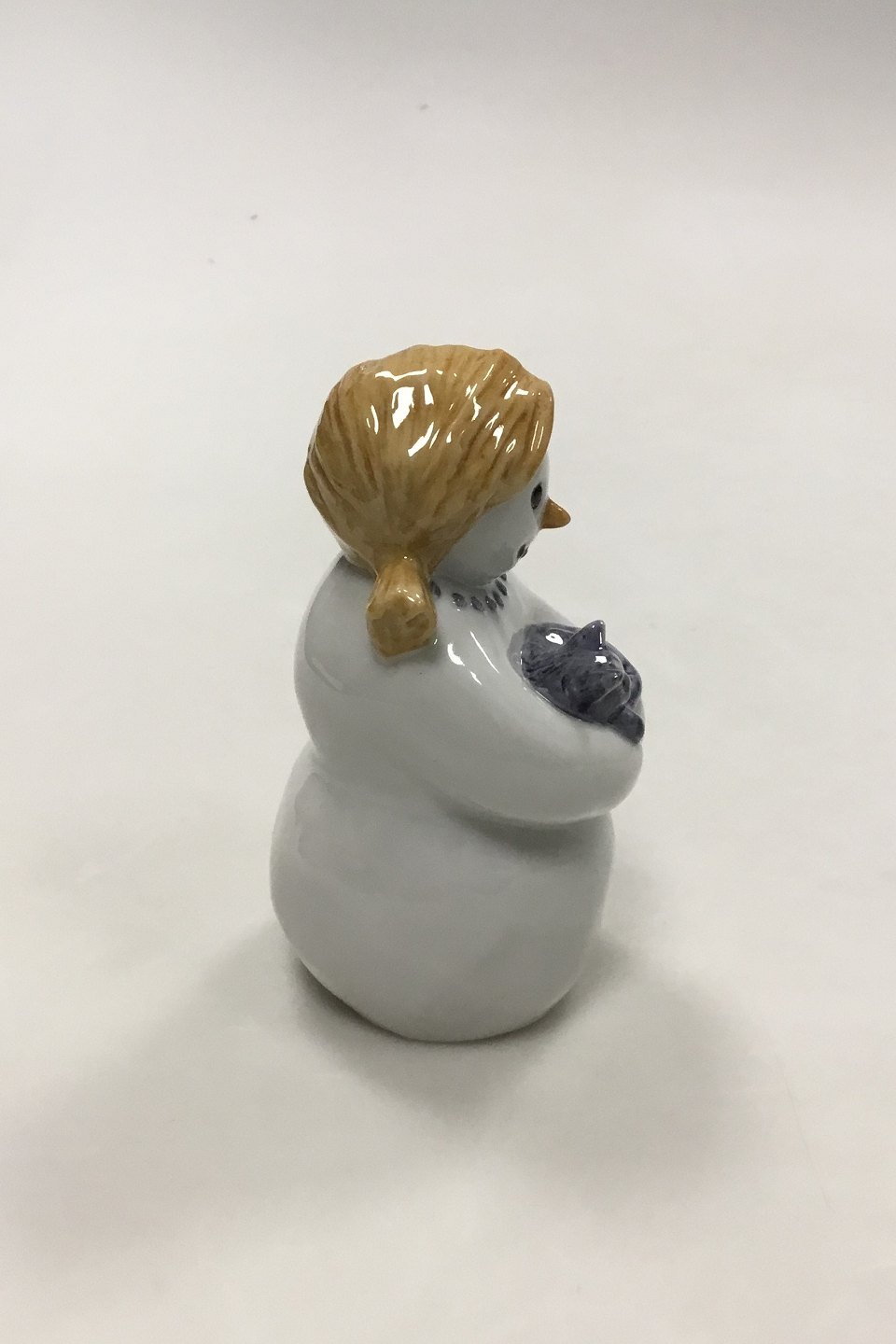 Royal Copenhagen Figurine of Snow Woman with Cat No. 018. Measures 10 cm / 3 15/16 in.
