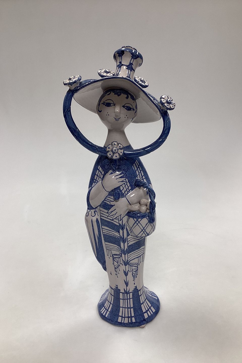 Bjorn Wiinblad figurine from The Four Seasons, Fall No M22. Signed in 1981. Measures 33 cm / 12.99 in. Repair of flower in the hat.