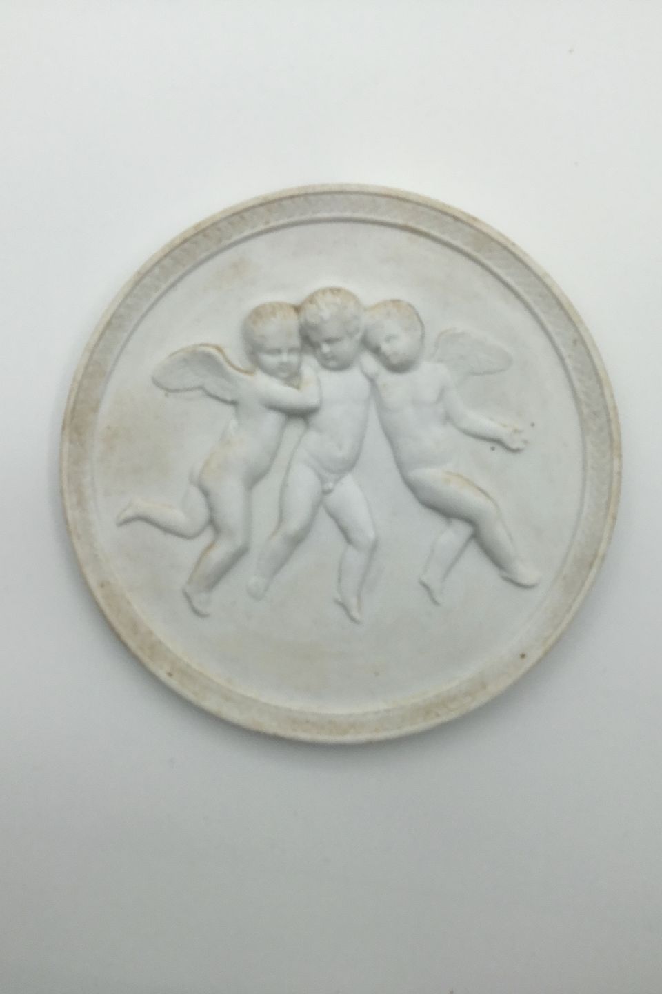 Royal Copenhagen Biscuit Platte Tre Svævende Engle No 89. Kopi fra 1842 af Th. Mule efter Thorvaldsens original fra Rom 1805-07. Måler 14,5cm