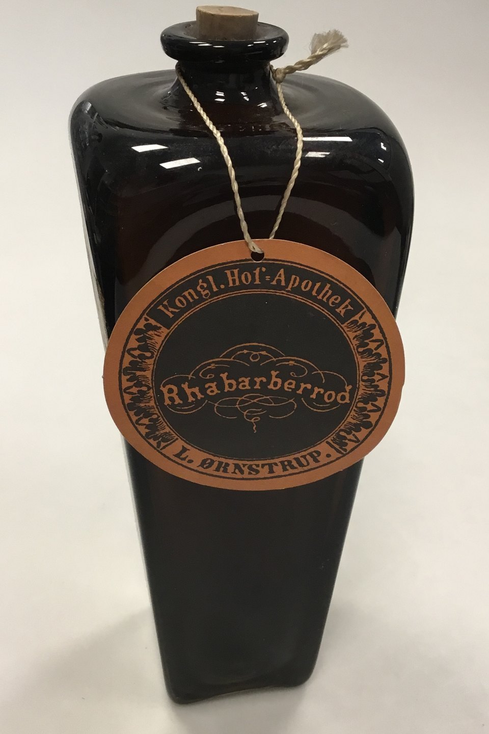 Holmegaard Apotekerflasken, krukke med tekst TINCT RHEI fra 1983.