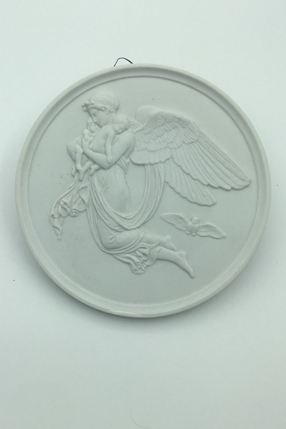 Bertel Thorvaldsen bisquit plate Bing and Grondahl "Natten" No. 123. After relief modeled in Rome 1815. Measures 14cm (5.51 inches). In good condition. Made after 1950
