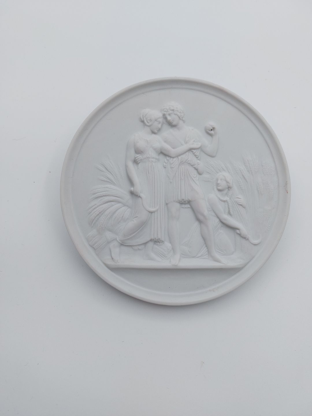 Bertel Thorvaldsen: Bing and Grondahl bisquit plate "Youth and spring" After relief modeled in Rome 1836. Measures 14.cm (5.51 inches). Made in the 20th century.