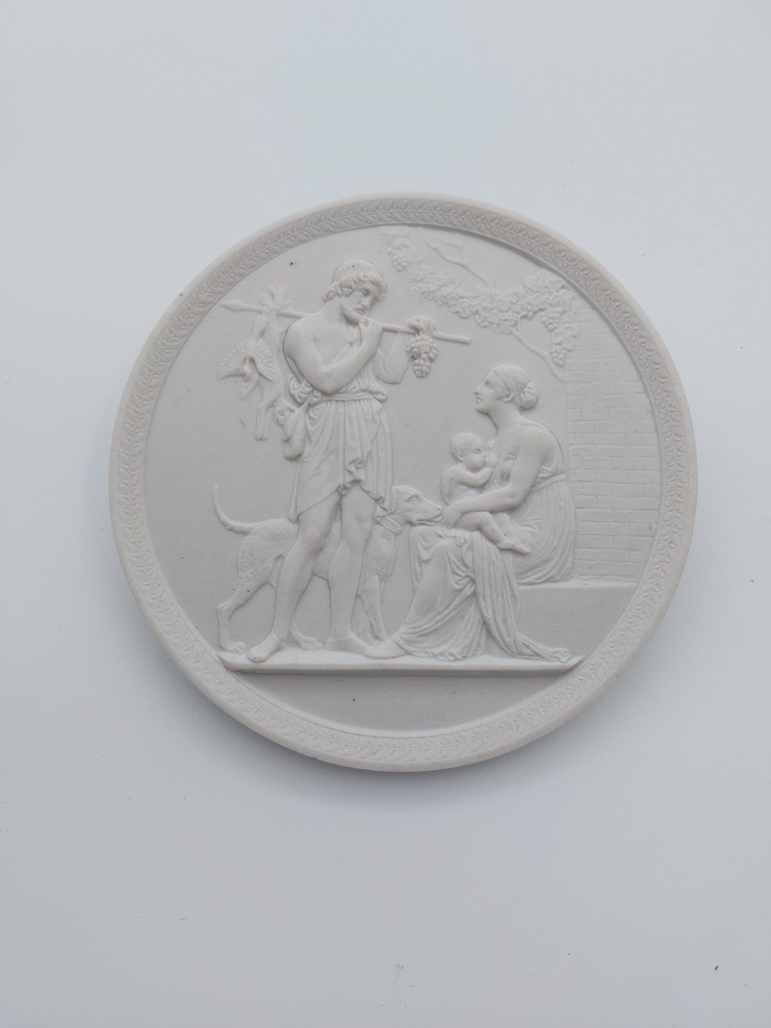 Bertel Thorvaldsen: Royal Copenhagen bisquit plate "Manhood and autumn" After relief modeled in Rome 1836. Measures 13.5cm (5.31 inches). Made in the late 19th century.