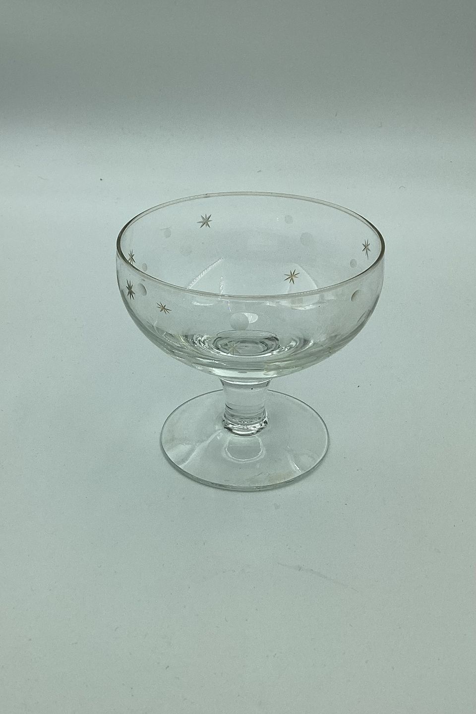 Champagne bowl in glass from Holmegaard Glasværk c. 1930. Decorated with sandings of moons and stars. Dimensions: H. 9 cm (3.54 inches) opening diameter at 9.5 cm (3.74 inches)